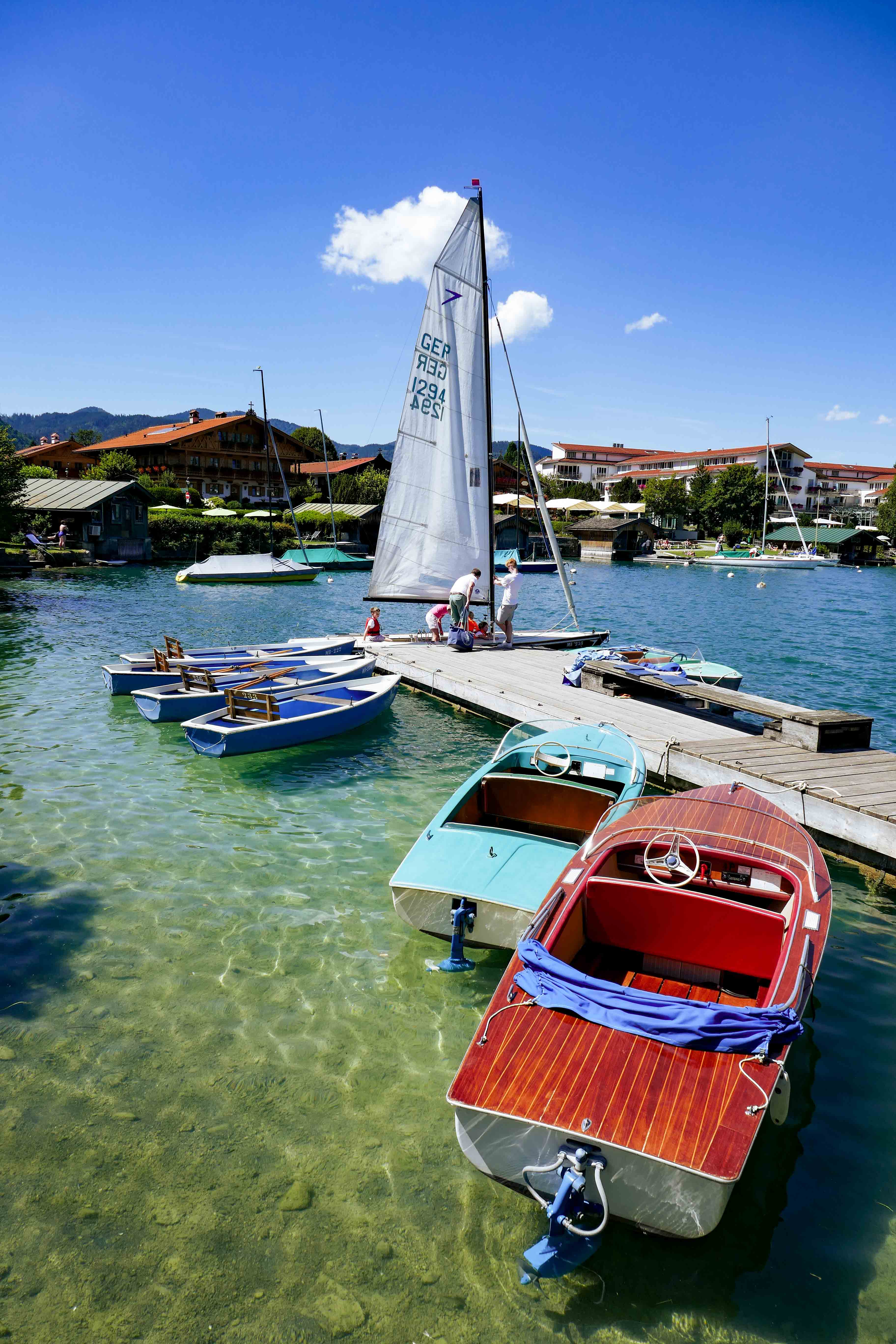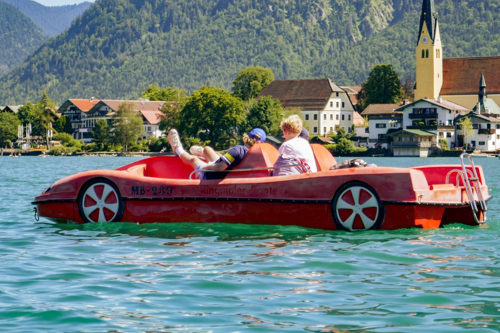 Weiter gings – an schönen Trachtenläden entlang, Immobilienbüros (kleiner Blick auf die „Angebote“ dort und nur ungläubig den Kopf geschüttelt) zum Bootsverleih. Wir hatten uns entschlossen, den Tegernsee nicht nur vom Ufer, sondern auch vom Wasser aus zu genießen.