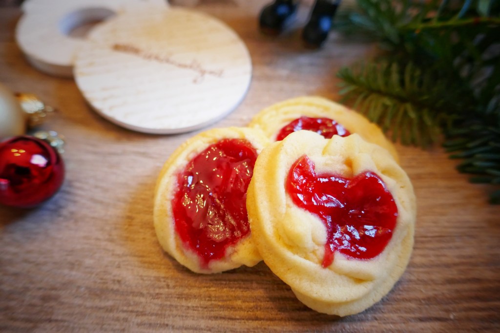 Dieses Jahr habe ich 4 Fliegen mit einer Klappe – sprich 4 Plätzchensorten mit einem Teig hergestellt. Der Teig schmeckt Klasse und mit diversen Füllungen trotzdem jedes etwas anders.