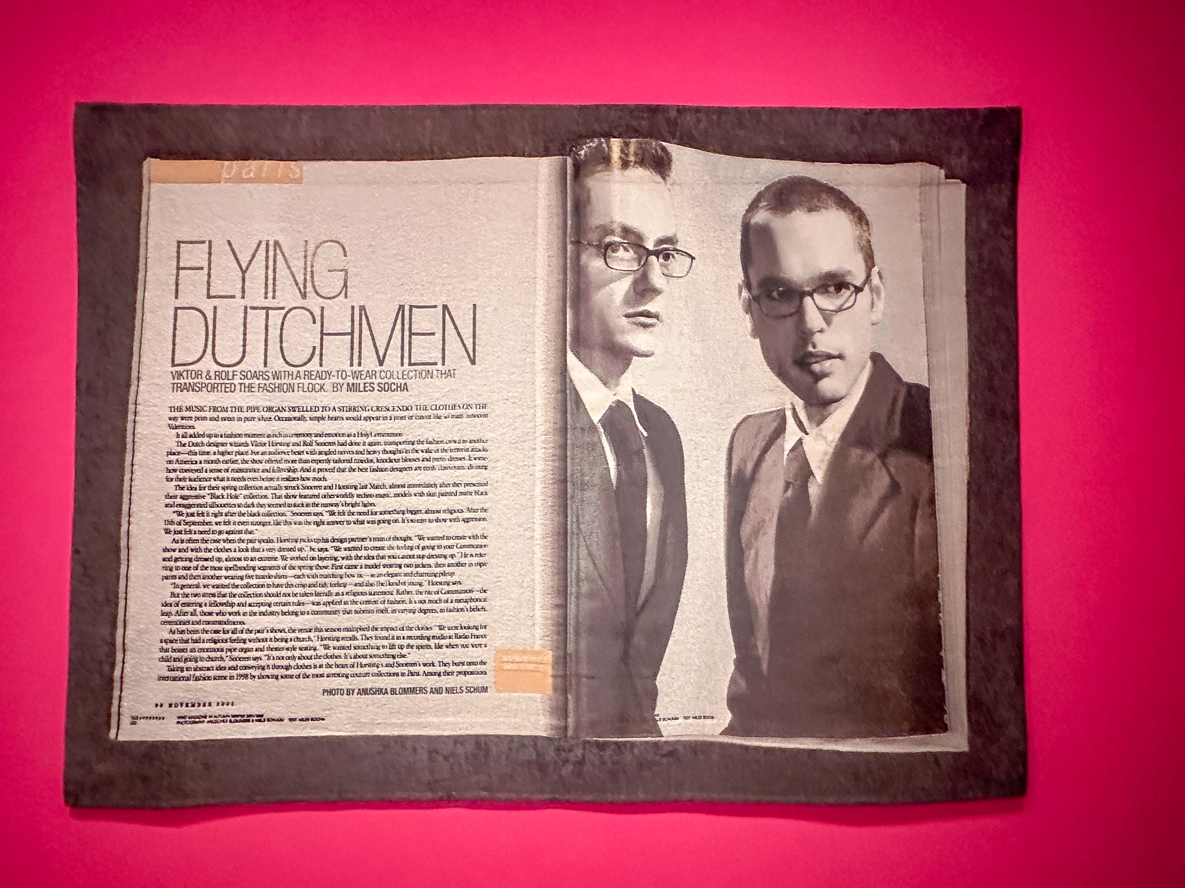 Viktor und Rolf sind zwei Niederländer, die sich während des Studiums an der Mode – Akademie in Arnheim kennenlernten. Nach Beendigung ihres Studiums überlegten sie, ihre Kräfte zu bündeln – sie taten sich zusammen und ihre erste Meisterleistung waren drei Preise für eine Kollektion, die ihre Vorliebe für skulpturale und experimentelle Kleidung zum Vorschein brachte. Dies hat man auch hier in der Ausstellung sehen können.