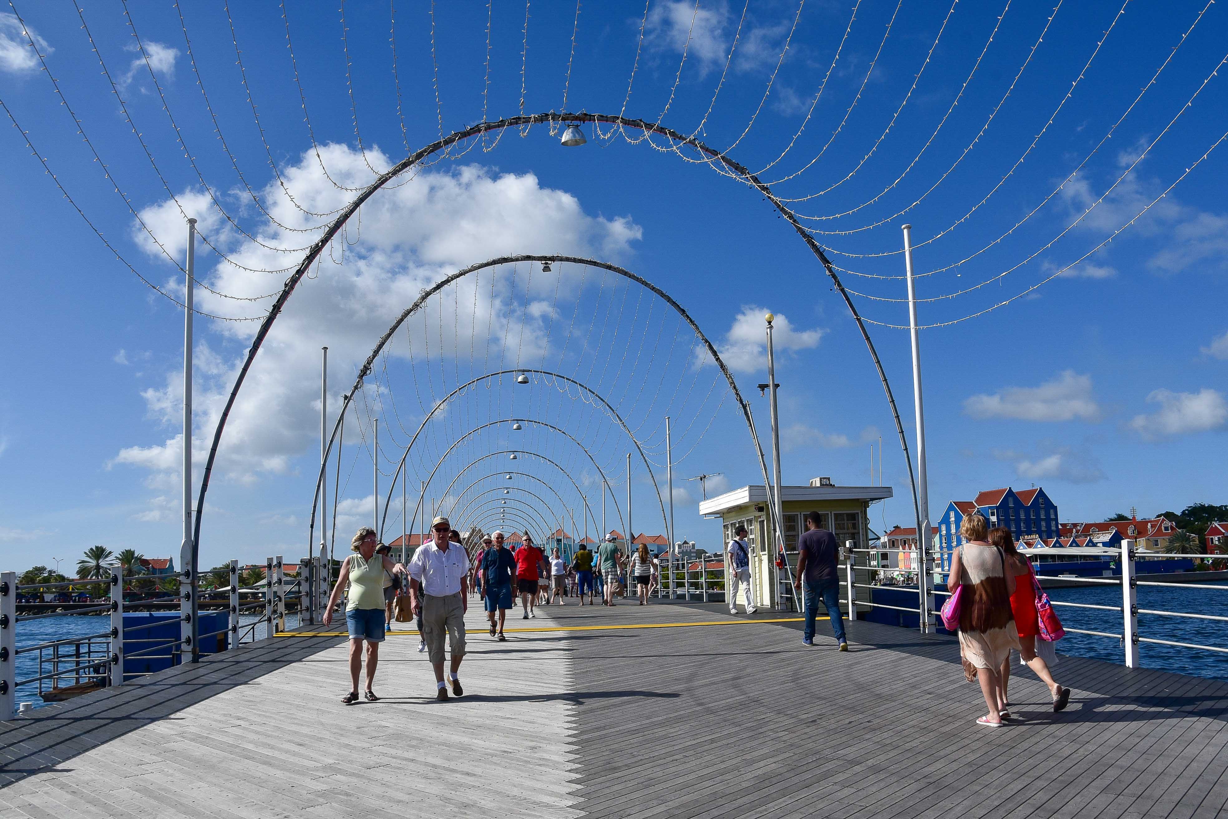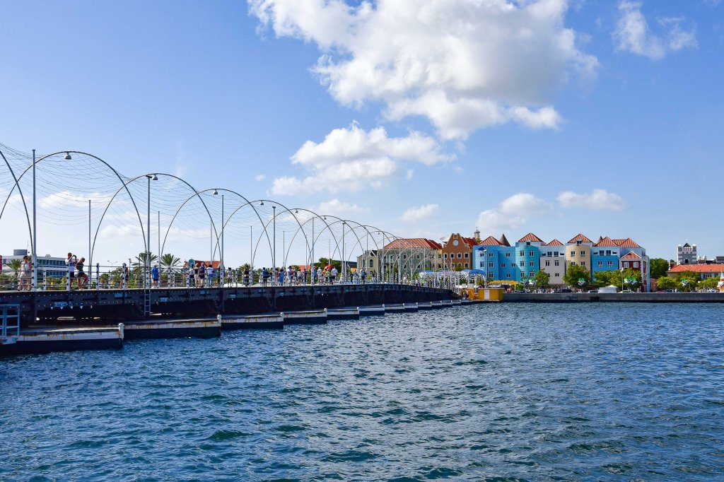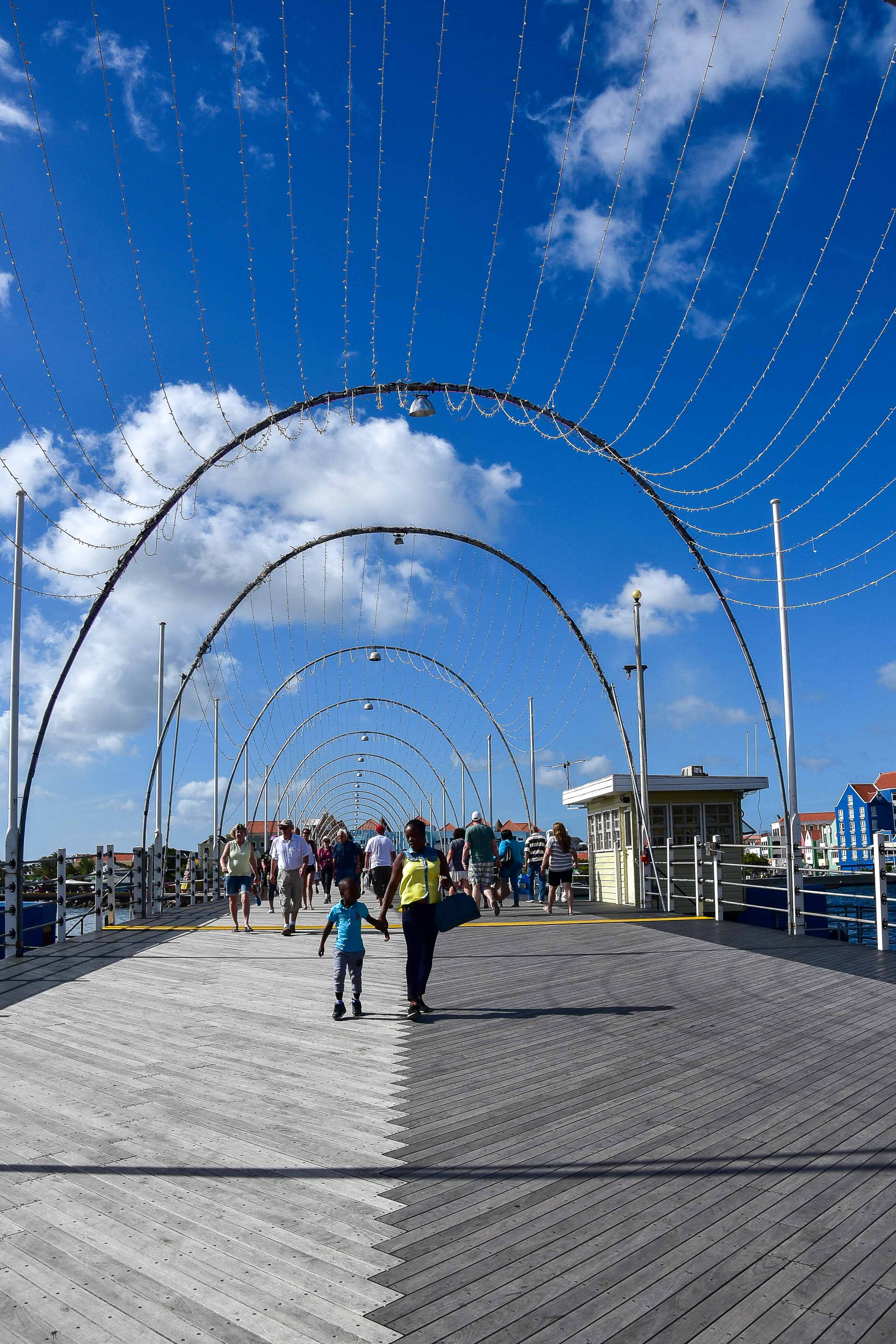 Die Queen Emma-Brücke, auch bekannt als die schwingende alte Dame, verbindet die beiden Seiten der Hauptstadt.