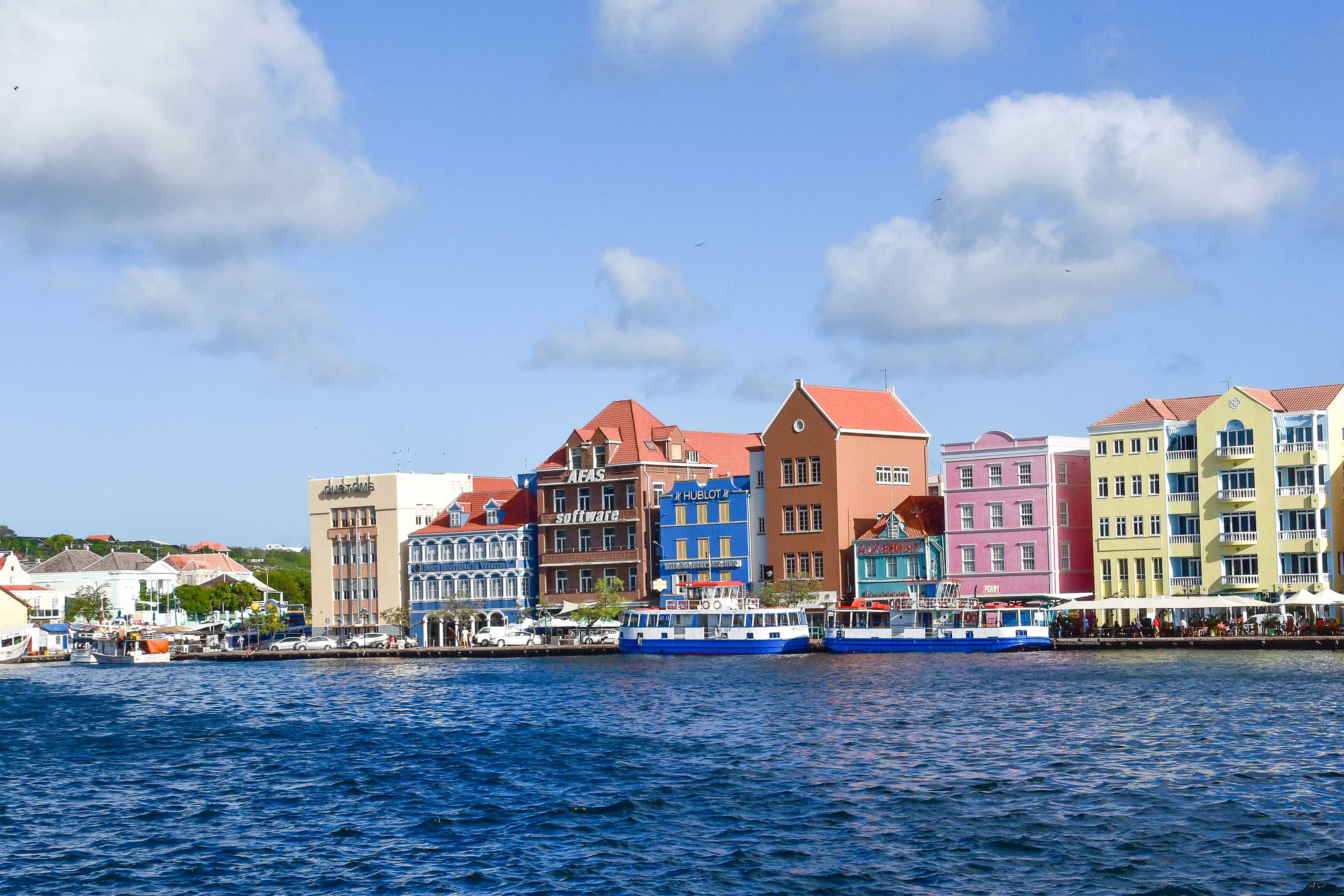 Charakteristisch für Willemstad sind die bunten Häuser mit verschnörkelten Fassaden, die man überall in der Stadt zu sehen bekommt und die in jedem Reisebericht erwähnt werden. Vor allem die farbenfrohen Häuser im Stadtteil Punda an der Handelskade, die ihren Ursprung in der Kolonialzeit haben, sind ein allzeit beliebtes Fotomotiv.