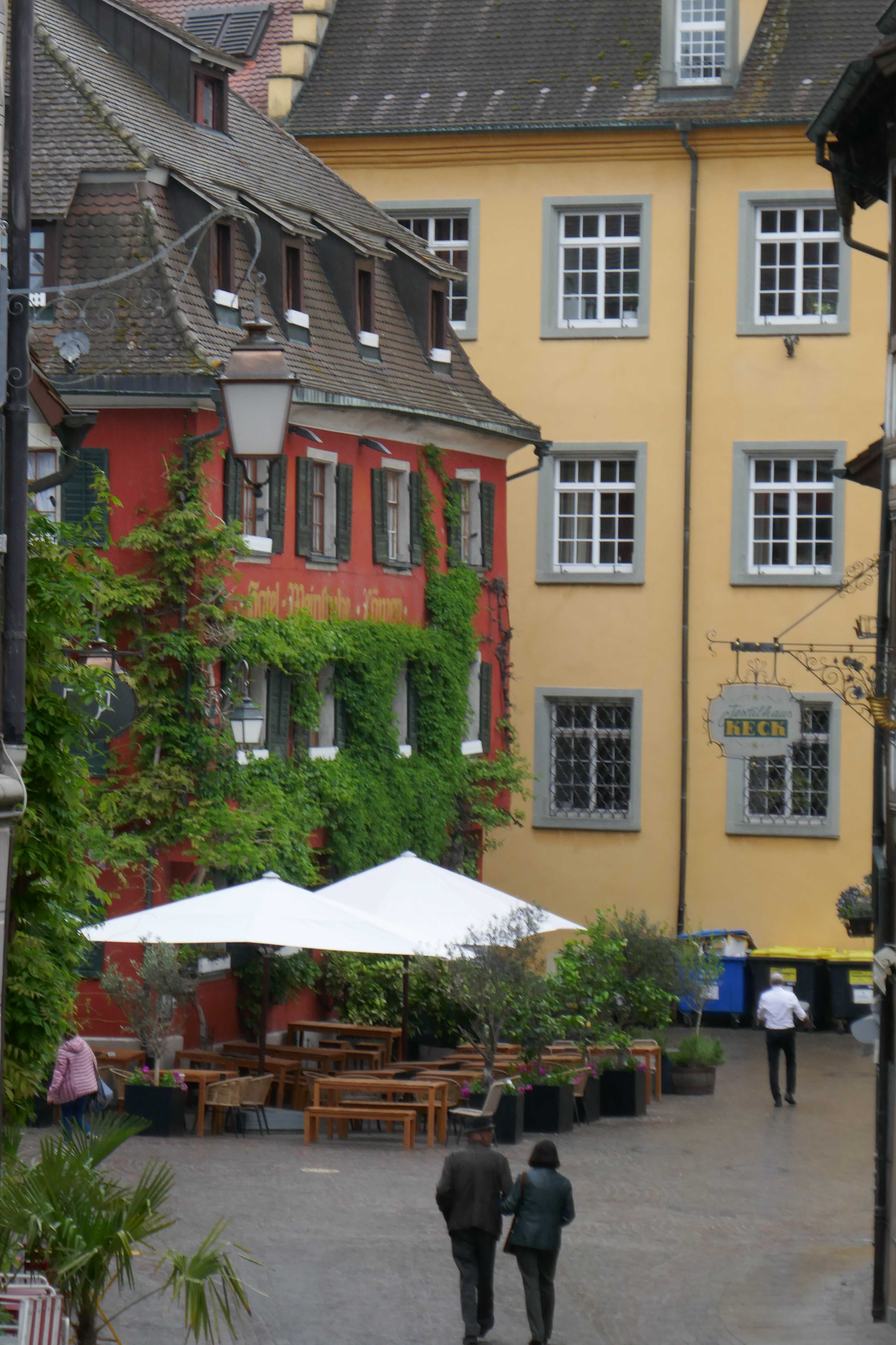 Danach ein kleiner Roundtrip durch Freiburg – auch eine sehr schöne Altstadt. Ganz nett, die „Hinweise“ auf der Straße, in welche Art Geschäft man nun geht, Apotheke – Obstgeschäft – Buchhandel. Wunderschön gemacht.