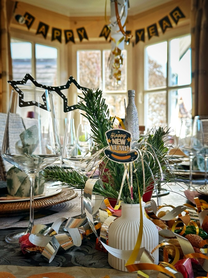 Der Tisch ist – soweit – gedeckt und dekoriert, Saucen fürs Fondue schlummern im Kühlschrank, Prosecco und Weißwein ebenfalls, Rotwein wohl temperiert …
