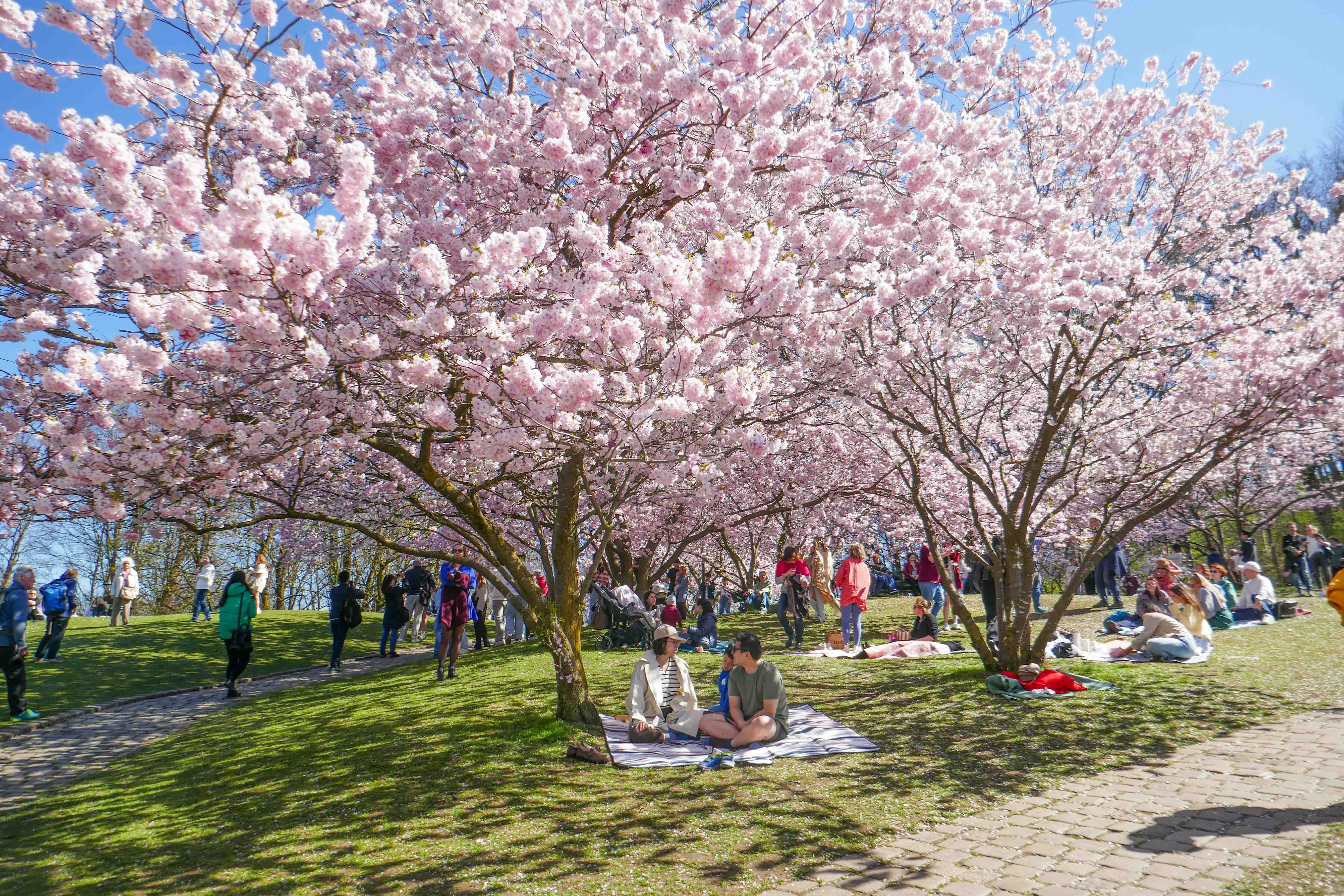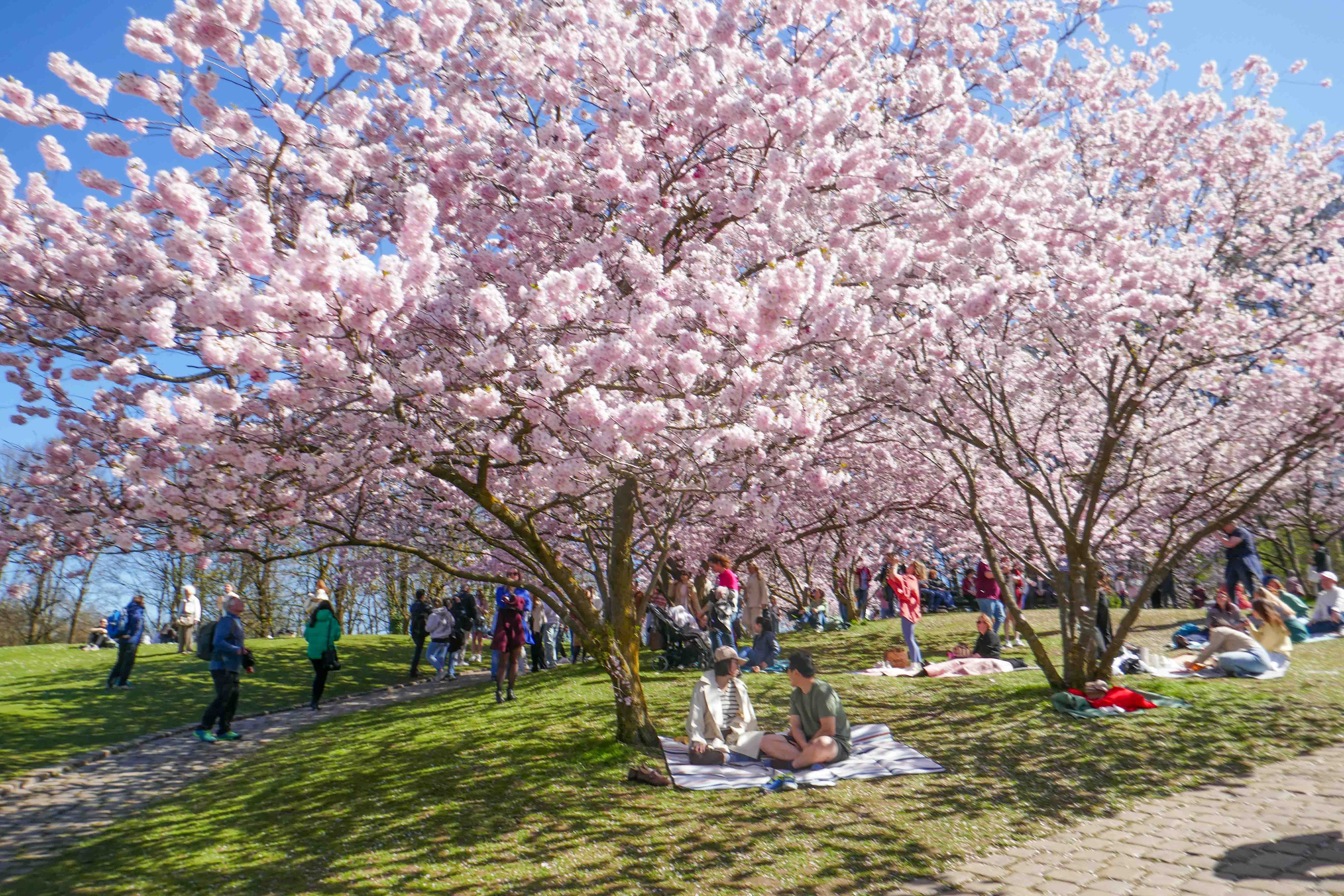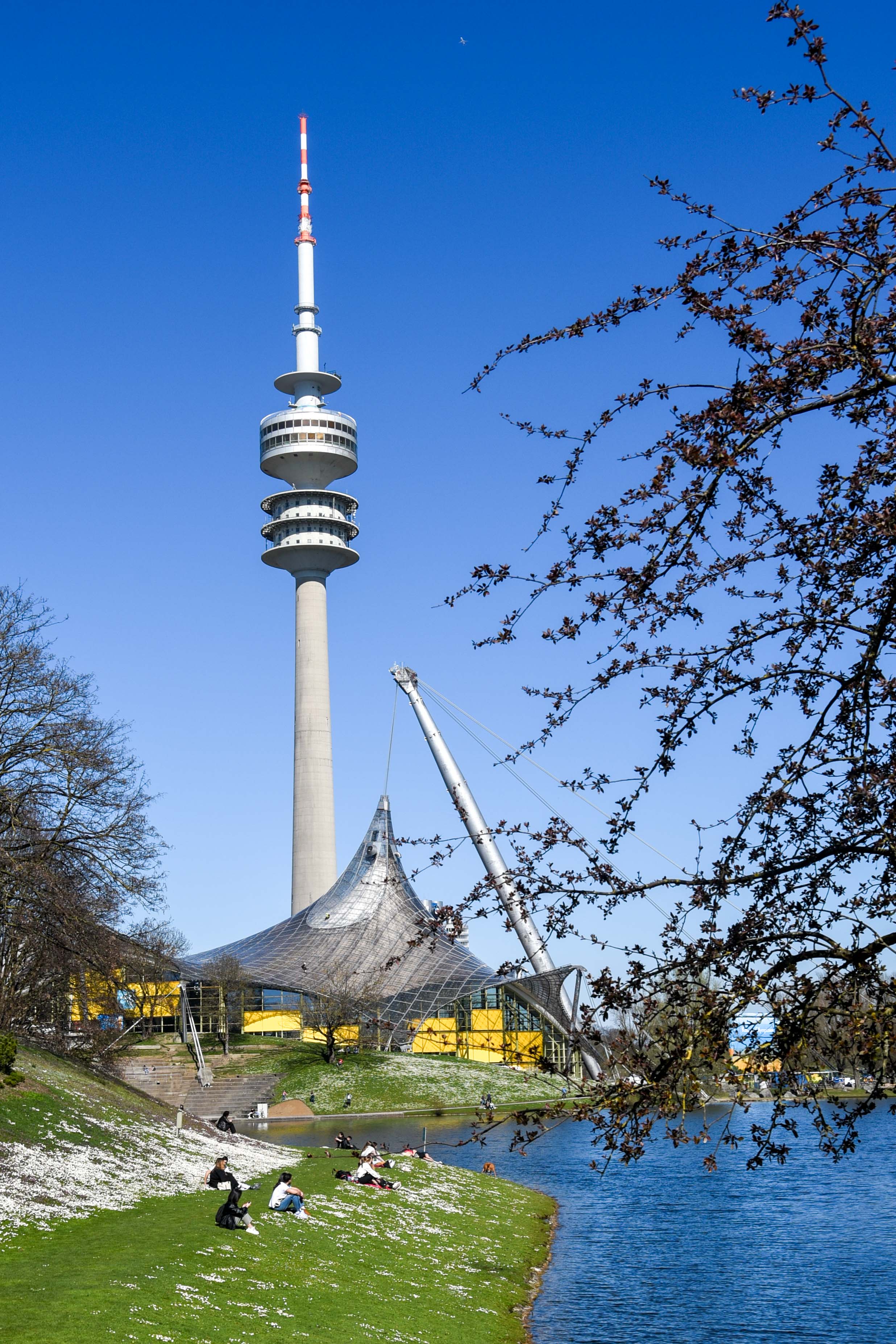 Und zwischen den Kirschbäumen dann noch der Blick auf den Olympiaturm und das BMW Hochhaus: