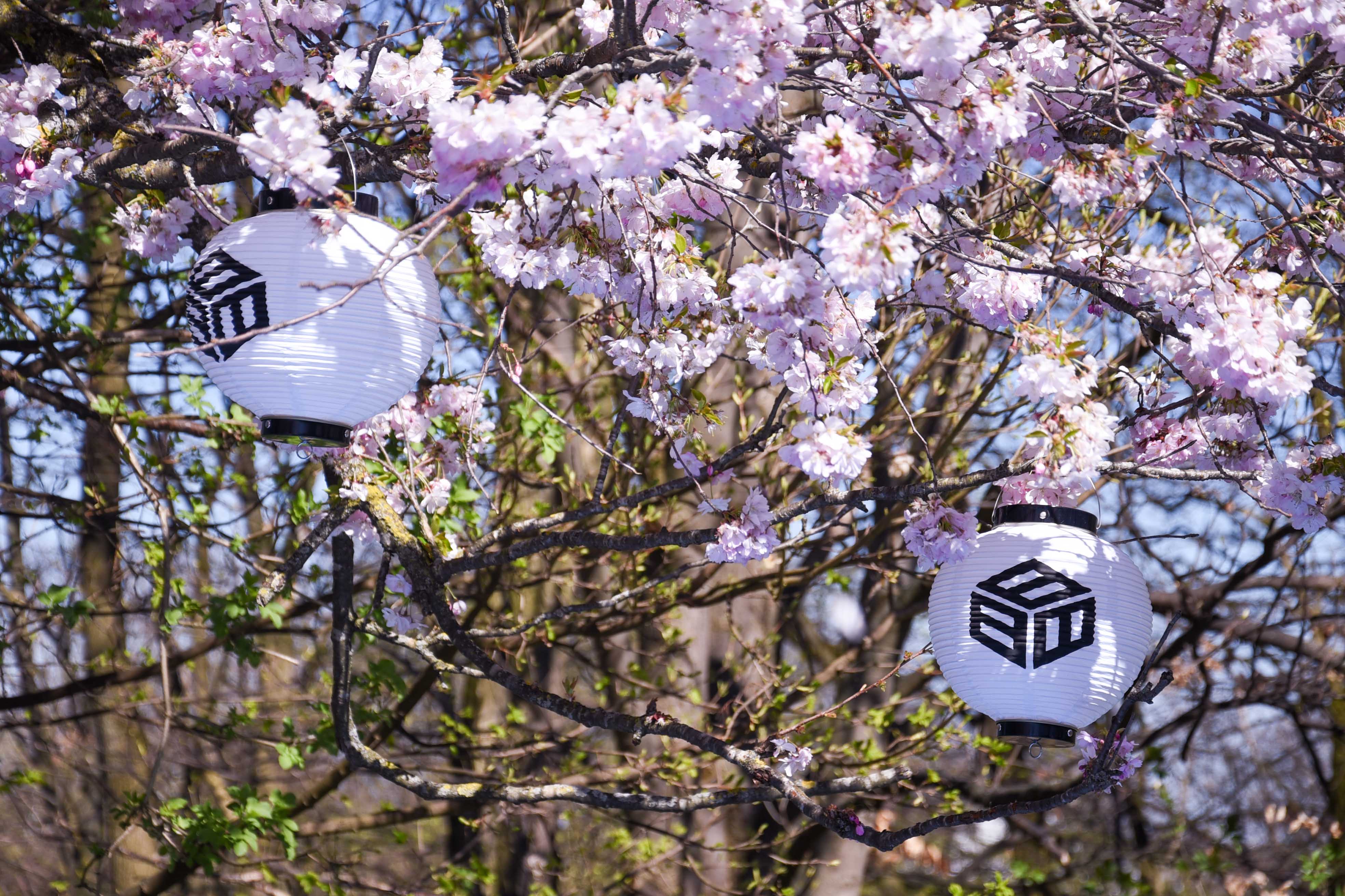 Und passed zu „Hanami“ hat eine Münchener Datenschutzfirma – Enobyte – ein paar japanische Lampions in den Bäumen aufgehängt: