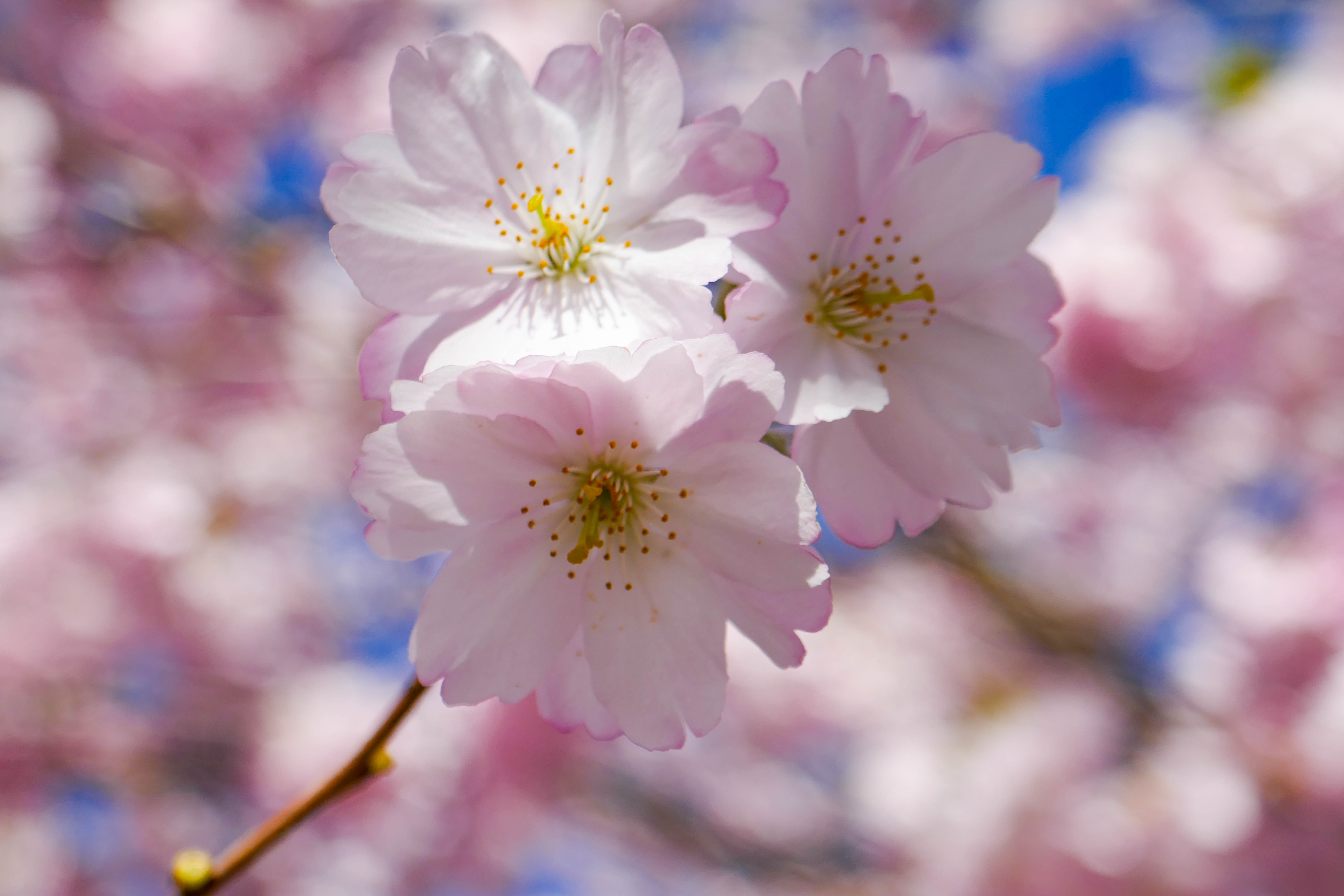 Es ist aber auch jedes Jahr wieder besonders, herrlich zum Anschauen und die Farben sind einfach wunderbar. Das erste seichte Grün, die weiß-rosabarbenen Blüten, der blaue Himmel, die helle Sonne. Und wenn dann noch ein laues Windchen durch die Kirschblüten fegt und die Blüten wie rosa Schnee zu Boden fallen, kann man sich schon wirklich daran erfreuen.