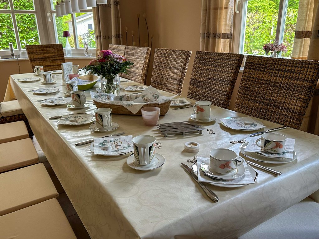 Um halb neun stand ich wieder parat, meine Eltern hatten schon Semmeln besorgt und es gab noch ein nettes gemeinsames Frühstück mit 13 Leuten, bevor die ersten dann wieder nach Hause fuhren.(Tisch hatte ich am Tag vorher schon eingedeckt).