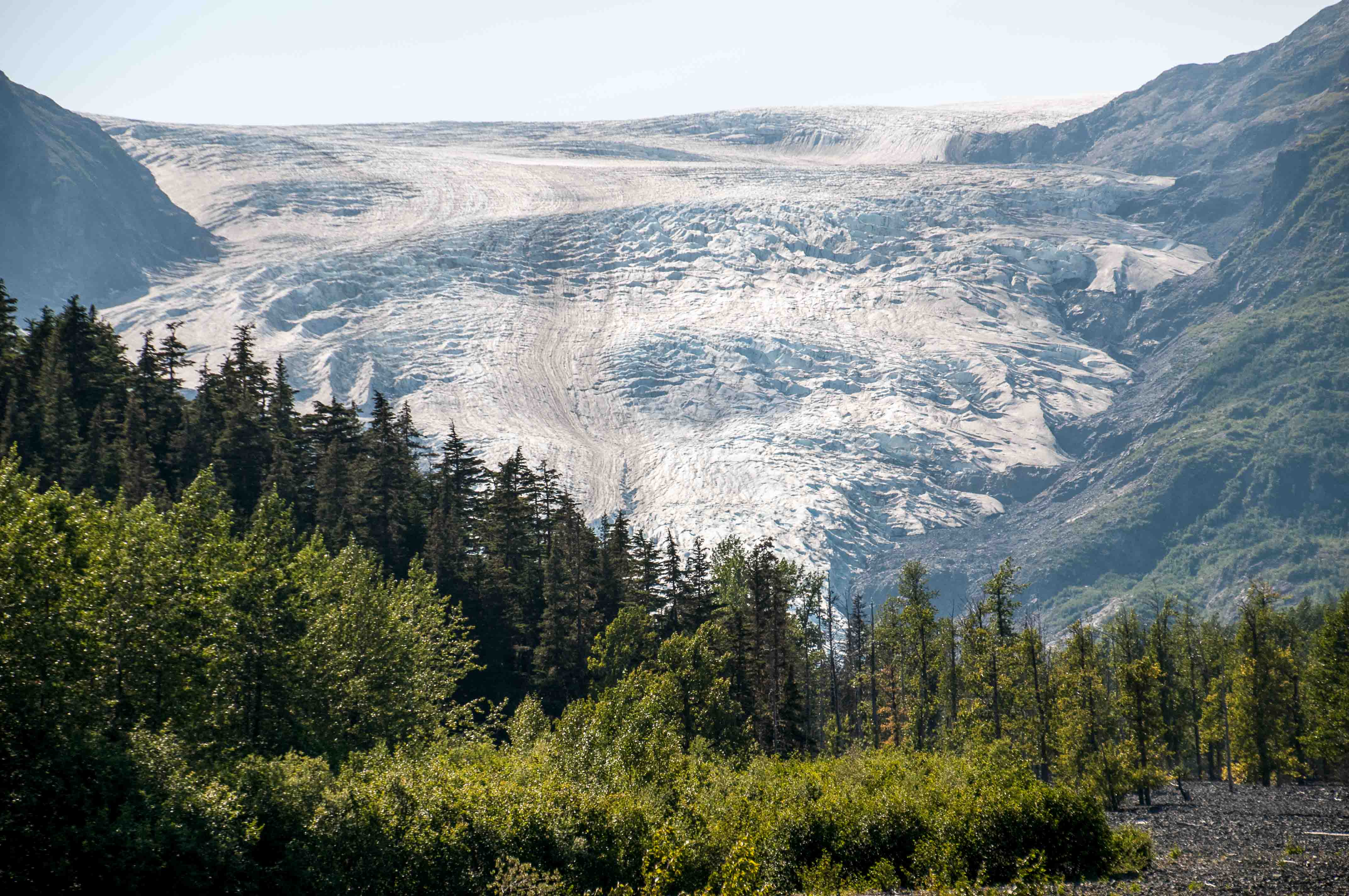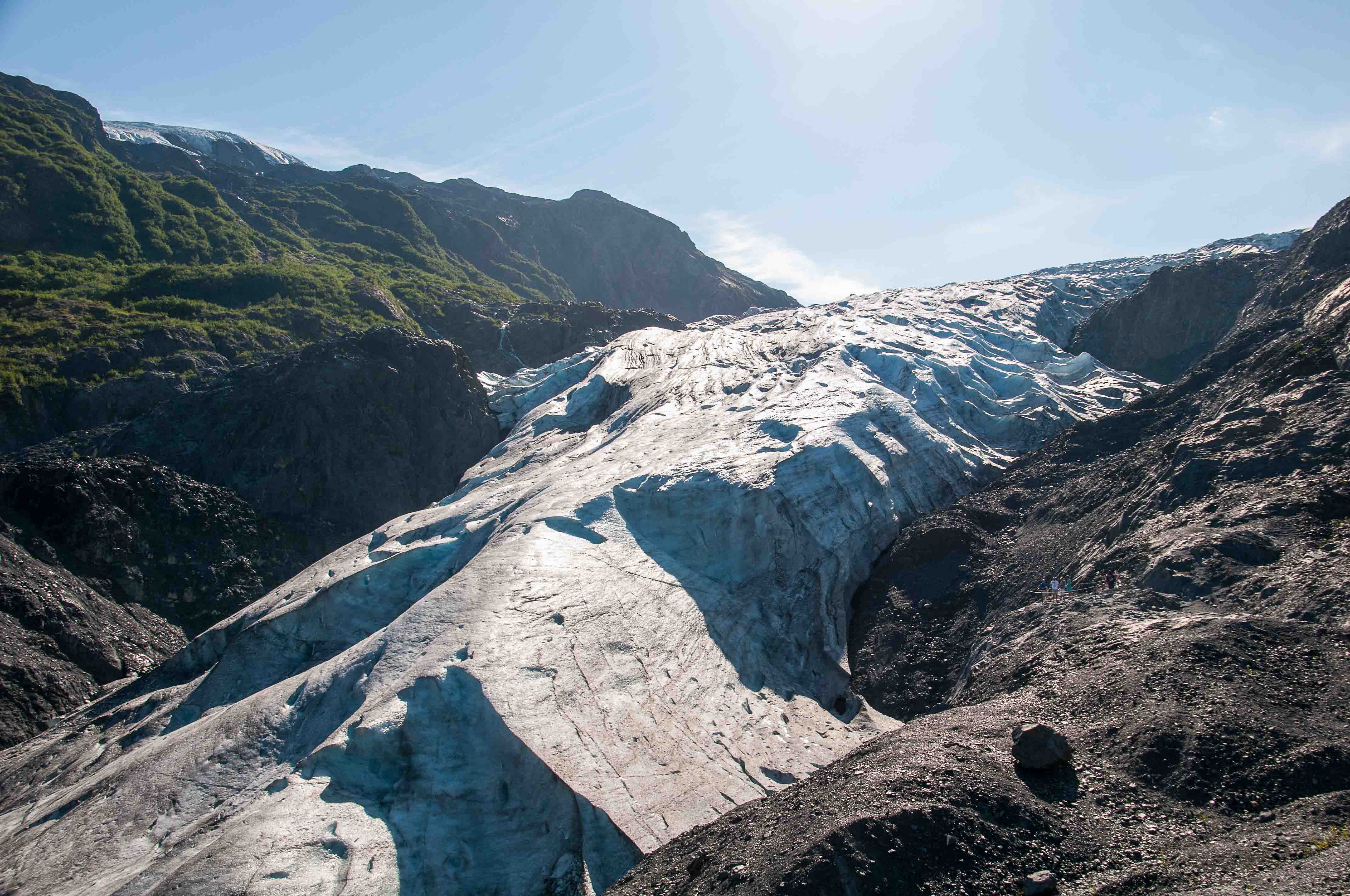 Nachdem wir dann in Seward angekommen sind, haben wir schnell unser Hotelzimmer bezogen und dann ging es schon gleich wieder los zum Exit -Glacier – einer der noch lebenden Gletscher.