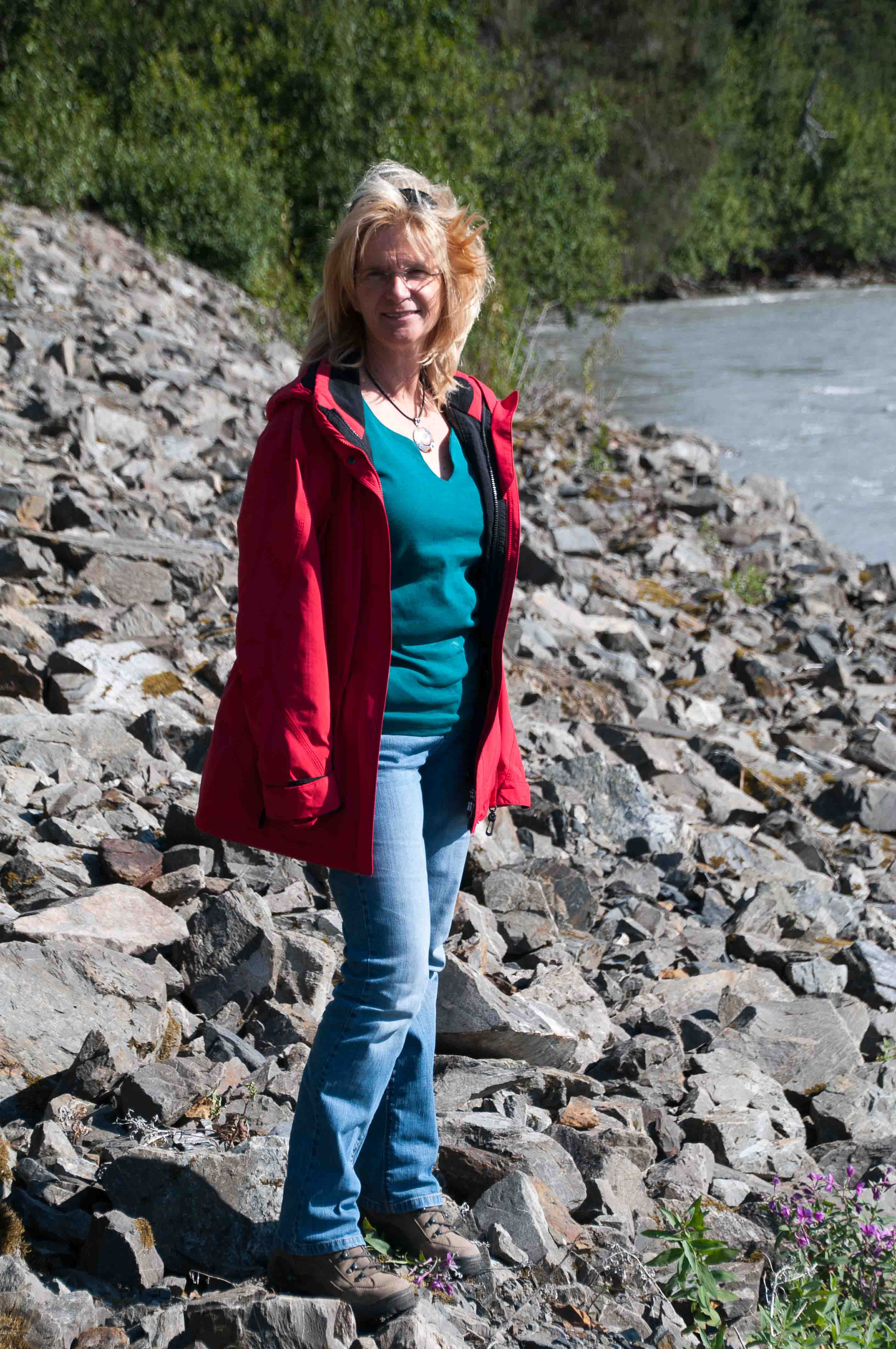Nach dem Frühstück machten wir uns auf den Weg nach Seward (ca 200 km) – die Landschaft war wunderschön und wir hatten ein solches Glück, dass es fast gar keine Mücken gab. Normalerweise haben die im Juli und August high season – wir haben davon gar nichts mitbekommen – nicht, daß wir etwas vermisst hätten. Aber wir konnten überall anhalten und aussteigen, ohne gleich „aufgefressen“ zu werden. Sehr zur Freude der Fotografin.