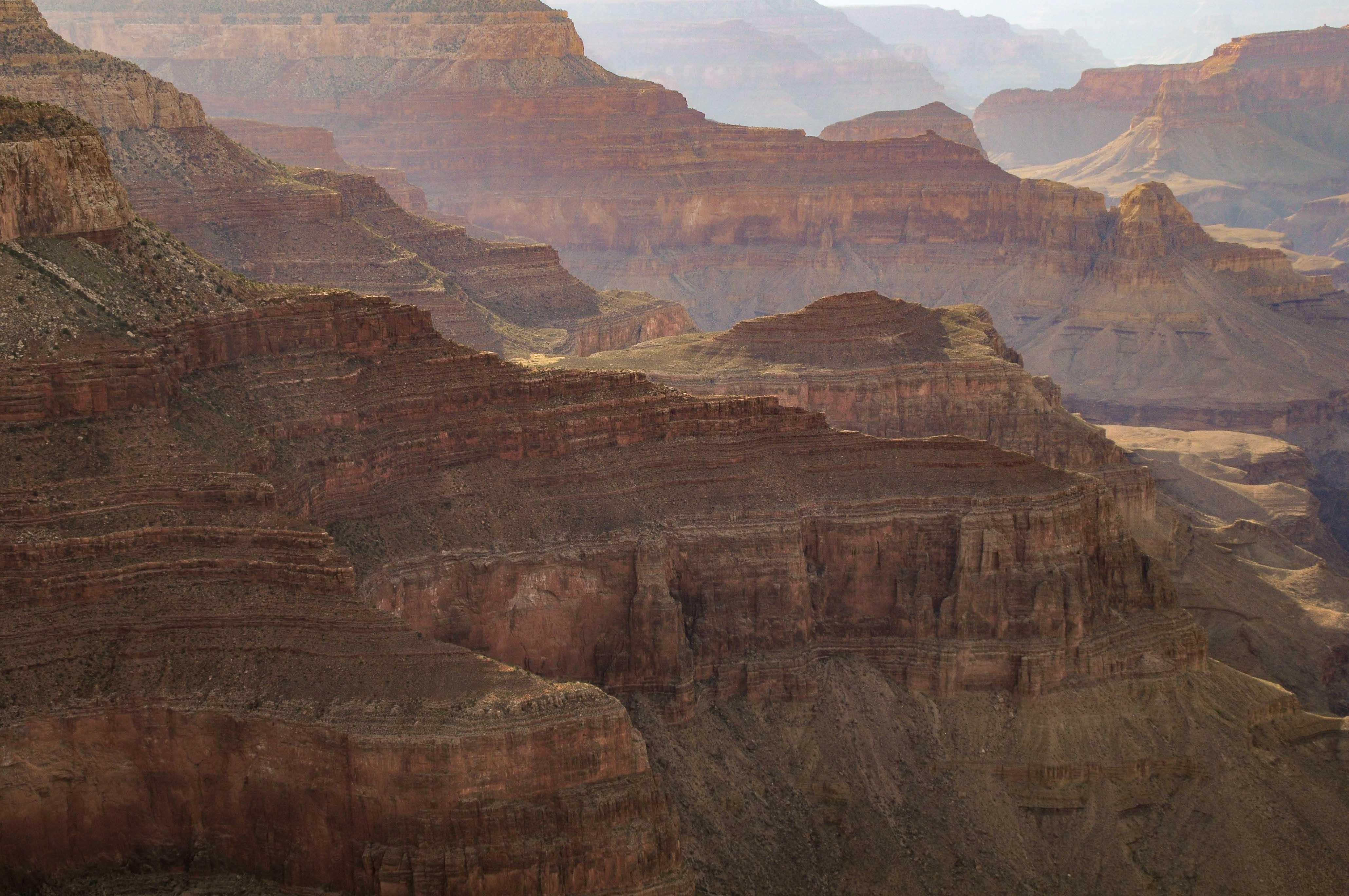 Und das ist eines meiner Lieblingsfotos vom Grand Canyon – auch wenn man nicht allzuviel erkennen kann – das „richtige“Licht war leider schon weg. Aber diese Stimmung und der leichte Dunst, der sich auf dem Gestein absetzte – das war so unreal und trotzdem wunderschön – irgendwie dachte ich, gleich erscheint John Wayne auf einem dieser Felsen.