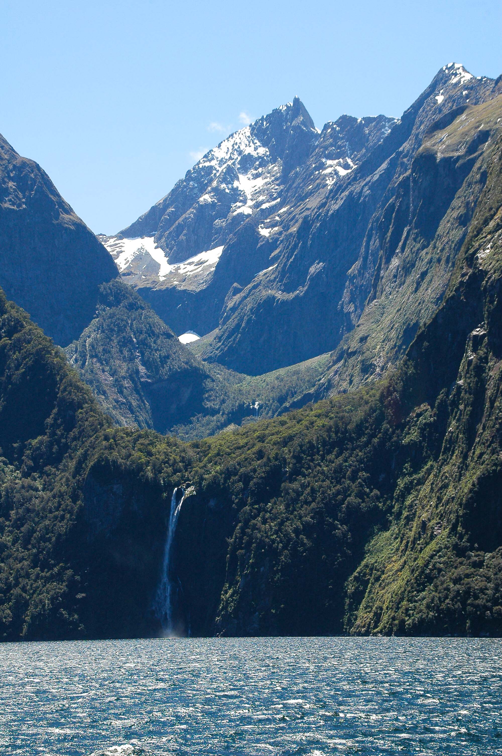 Unser nächstes Ziel hieß Te Anau und Milford Sound. Ursprünglich hatten wir geplant, gemütlich nach Te Anau (ca 150 km) zu fahren und am nächsten Tag zum Milford Sound zu fahren. Nun sagte die Wettervorhersage für den kommenden Tag Regen und Nebel voraus – also Gaspedal durchtreten, so schnell wie möglich nach Te Anau - von dort ca 130 km zum Milford Sound. Dort gabs für den heutigen Tag nur noch einen Slot für eine Fahrt mit dem Schiff über den Milford Sound – 13.30Uhr. Wir mussten uns wirklich beeilen – und das taten wir.150 km zur Lodge (unserer Unterkunft), Koffer aus dem Auto gezerrt, wieder hineingesprungen und nochmals 130 km zum Milford Sound. Vorbei an wunderschöner Landschaft…schnaufend kamen wir um 13.20 Uhr an und stolperten an Bord….