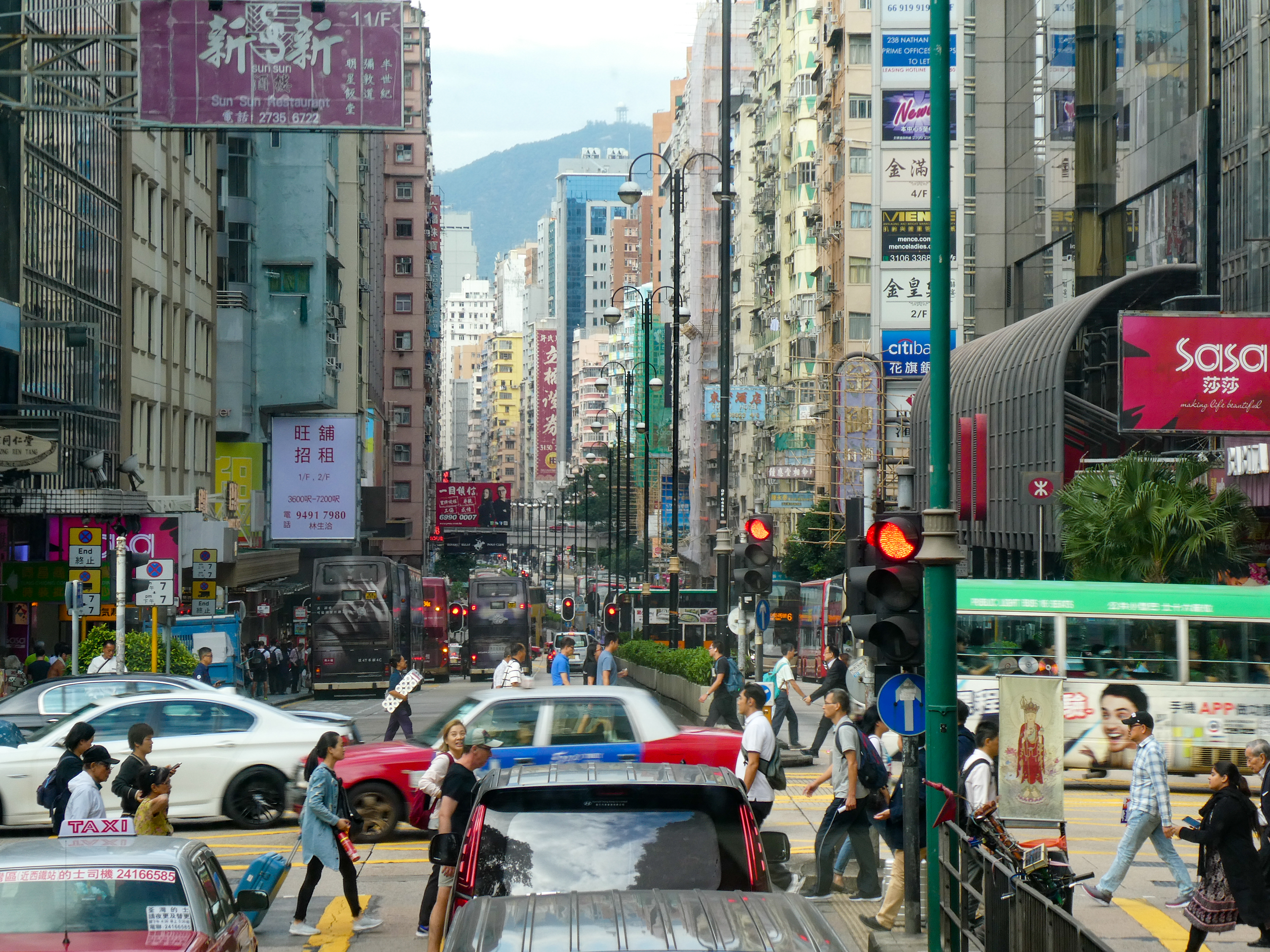 Nachdem wir wieder mal recht früh aus den Federn mußten (5.00 Uhr), gabs ein schnelles Frühstück im Hotel und dann wurden wir schon abgeholt und mit dem Transrapid gings zum Flughafen Shanghai – eingecheckt und mit 30 minütiger Verspätung gings gen Hongkong. Dort wurden wir vom Hotelservice abgeholt (Guide brauchten wir nicht, wir dachten uns, daß wir ja Großstadterfahren sind und uns zumindest hier in Hongkong alleine auf Sightseeing gehen könnten) und ins Hotel gebraucht. Zimmer hattten wir schnell bezogen, etwas frisch gemacht und dann raus auf die Strasse und losgelaufen… Mein erster Gedanke war: Mein Gott, ist das laut und hektisch hier….