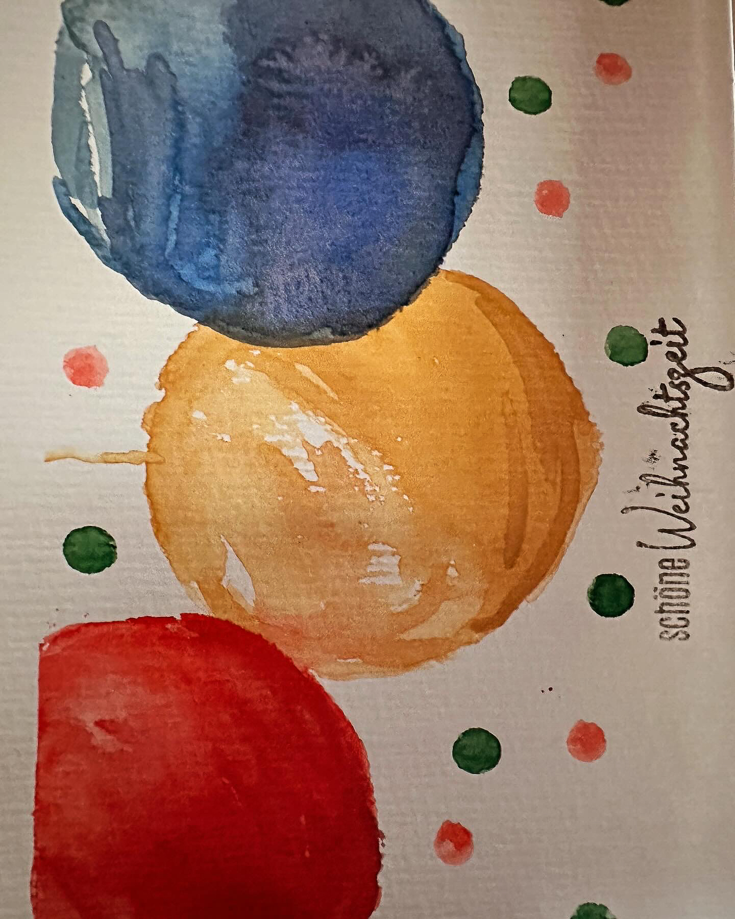 Und ja – ich hab dieses Jahr wieder nicht richtig gezählt und mußte in die Nachproduktion der Weihnachtskarten gehen – diesmal mit Farbe und Pinsel: