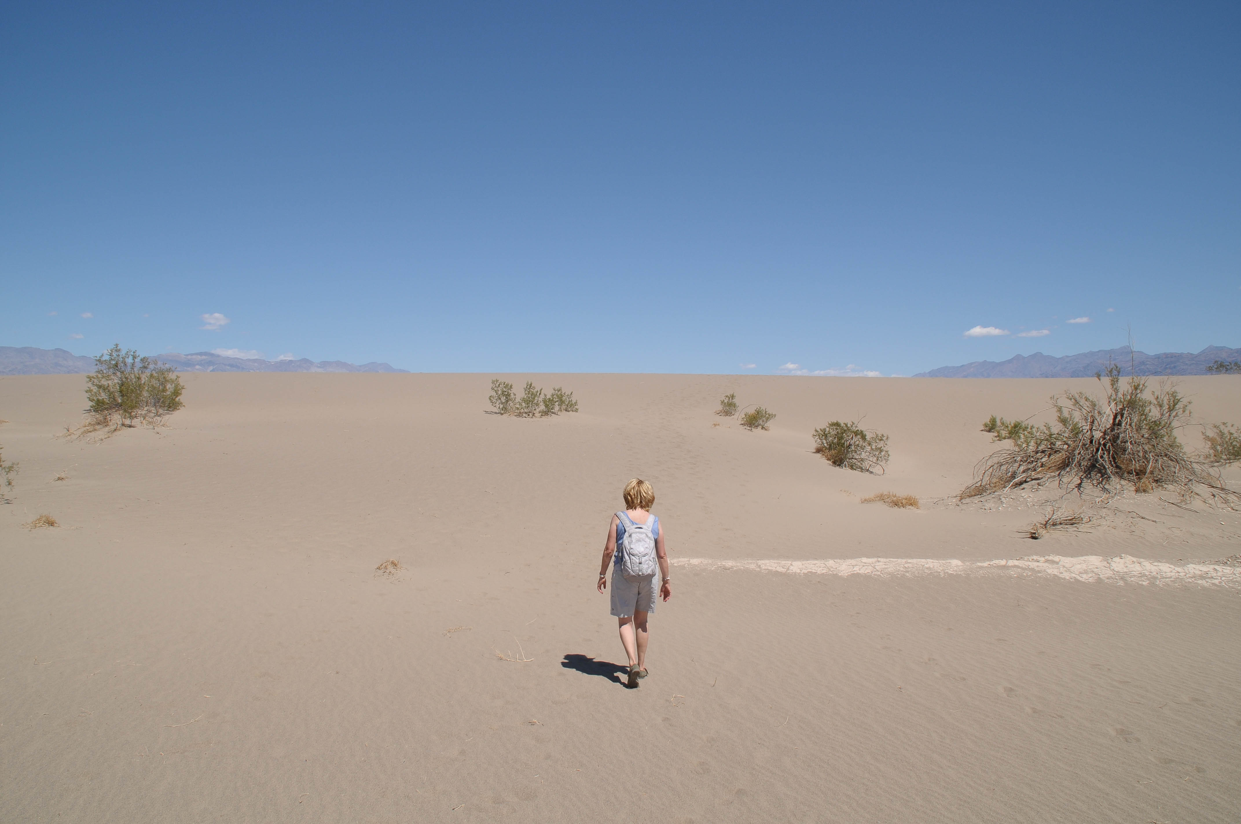 Am nächsten Morgen machten wir uns nach einem Kaffee mit Muffin und Tee mit Rührei und Toast wieder auf den Weg zu den Mesquite Flats Sand Dunes – solch einen feinen Quarzsand hatte ich noch niemals zuvor gesehen.