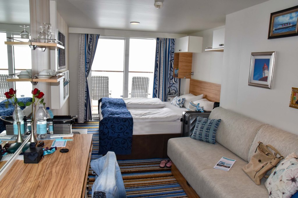 Unsere Reise startete am 14.06.2017 in Kiel vom Ostseekai. Einchecken ging flott, wir waren sehr früh da und konnten, nachdem wir unsere Bordkarten und alles nötige in Empfang genommen hatten, an Bord gehen. Unsere Koffer standen auch relativ bald vor der Kabine und so konnten wir uns schon gemütlich einrichten und eine Runde über die Mein Schiff 3 laufen. Wir hatten eine Balkonkabine – die Kabine ist um die 17 m2 groß – der Balkon nochmal 5 m2. Herrlich.