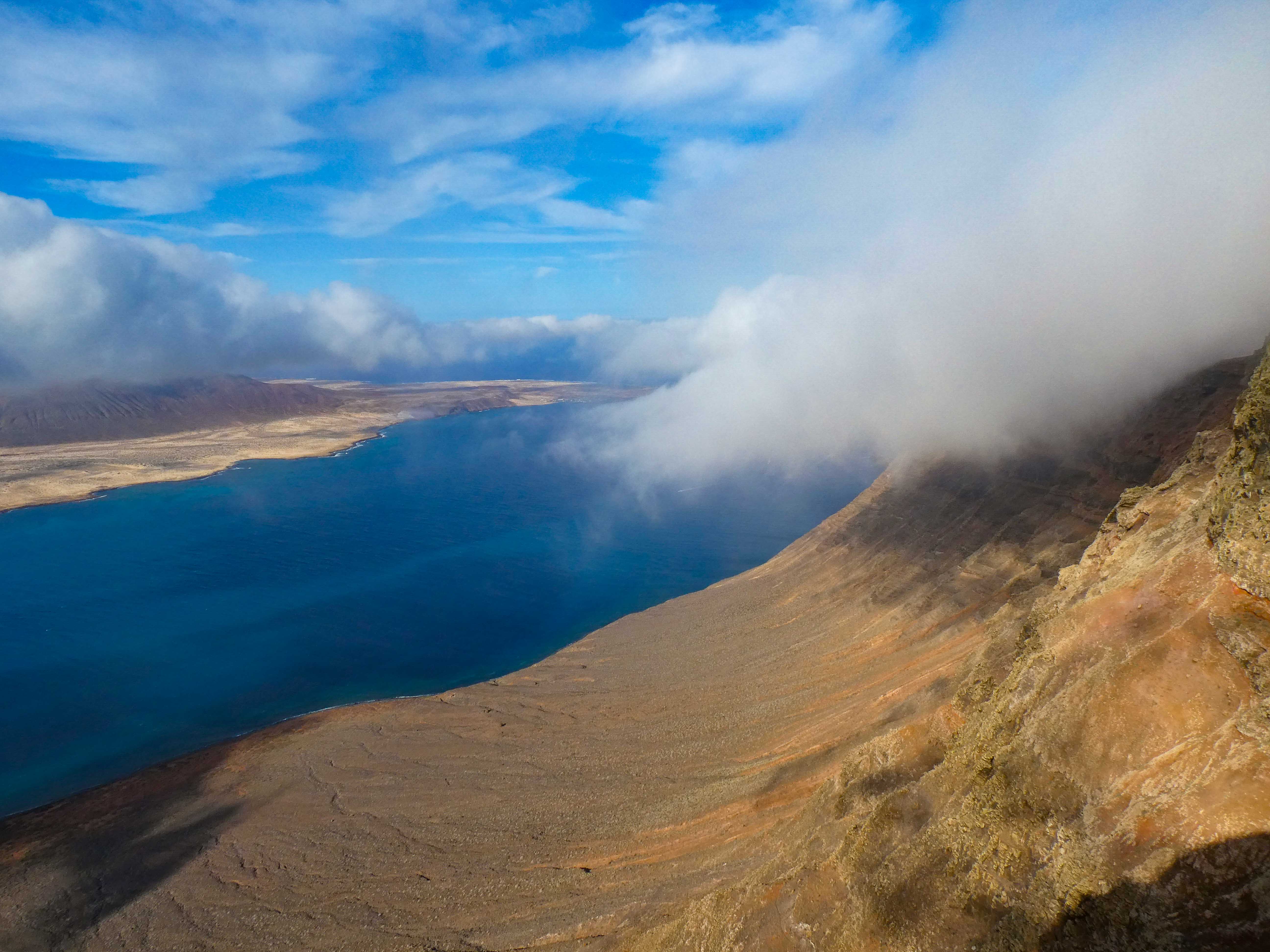 Weiter ging es dann zum Mirador del Rio. Der Aussichtspunkt El Mirador del Río befindet sich 500 Meter über einer Klippe und bietet einen spektakulären Panoramablick auf Lanzarote und den Chinijo-Archipel. Es wurde in den 70er Jahren eingeweiht und ist eines der repräsentativsten architektonischen Werke von César Manrique für die Integration der Hand des Menschen in die natürliche Umgebung, eine harmonische Formel, die Kunst und Natur miteinander verbindet.Von hier aus konnten wir die Hänge des Risco de Famara sehen, und dann sehen wir El Río: ein schmaler Meeresstreifen, der dem Aussichtspunkt seinen Namen gibt und Lanzarote von La Graciosa, der achten Kanarischen Insel, trennt. Das waren wirklich einzigartige und wunderschöne Ausblicke.