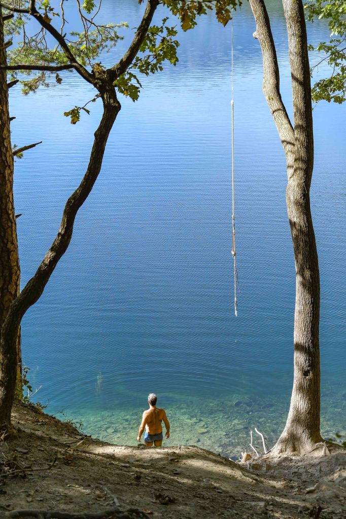 Und hier im großen Montiggler See fanden sich auch noch der ein oder anderer Schwimmer ein – mitten im Oktober. Die Wanderung dauerte ca 2 Stunden 20 Minuten – es war herrlich, relativ eben und im Gegensatz zur Wanderung am Dienstag kaum Höhenmeter.