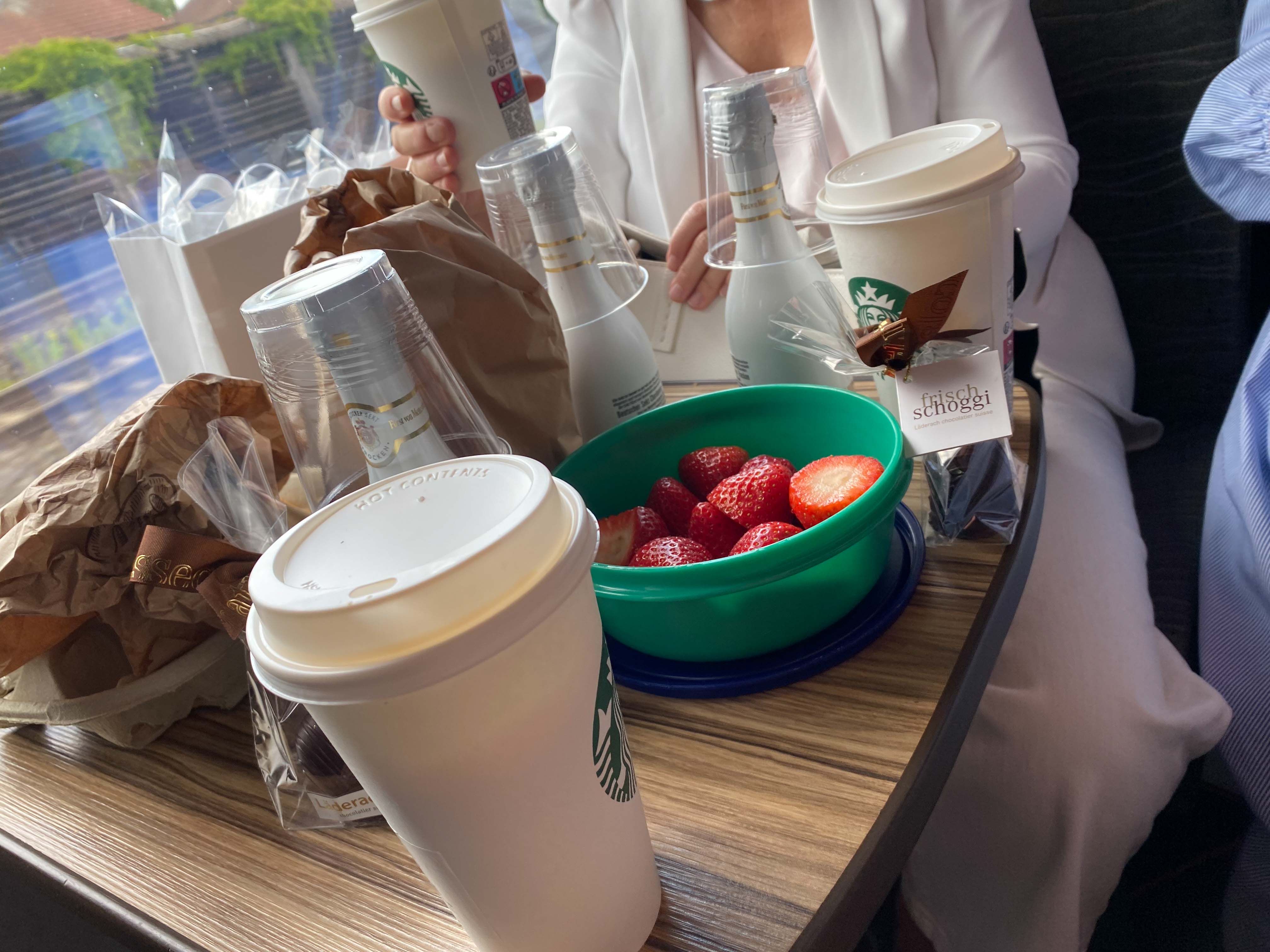 Raus aus dem „Müller“ zum Blumenstand – nee, Topfblumen haben wir keine. Gut, dann eben nicht. Weiter zum Bäcker, gewünschtes Brot für Schwiemu ist aus, (um kurz vor 11 Uhr), gut, nehmen wir ein ähnliches.