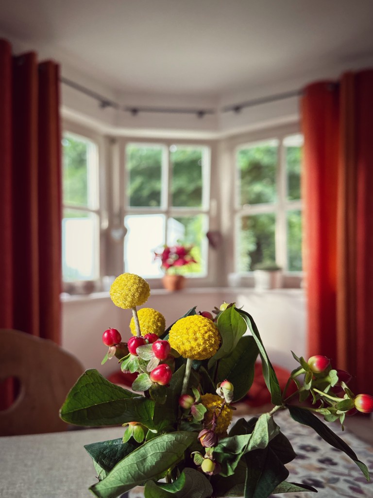 Ja, es war ein “aufregender Tag” – ach ja, mein liebevoller selbst gebackener Schmandkuchen hat sich – nachdem ich ihn aus der Form genommen habe – leicht verflüssigt und Schmand und Apfelmus liefen dann bei der Schwiemu schön über den Tisch. Aber gut war er 🙂