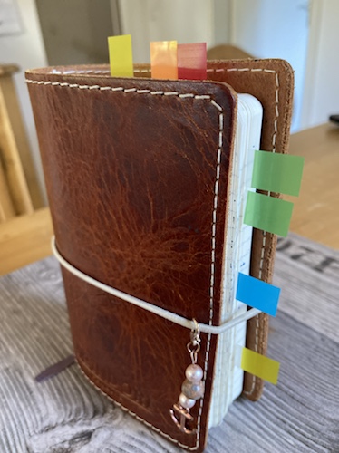 …so nenne ich ihn immer – meinen MoinDori – mein Notizbuch – außen tolles Leder mit genialer Masserung – innen kann man kleine Hefte oder auch Kalender festhängen und wenn sie voll sind, austauschen. Richtig praktisch. Konzipiert von einem kleinen aber feinen Unternehmen in Hamburg – und keine Massenware. Da wird jeder Planer liebevoll handgearbeitet.
