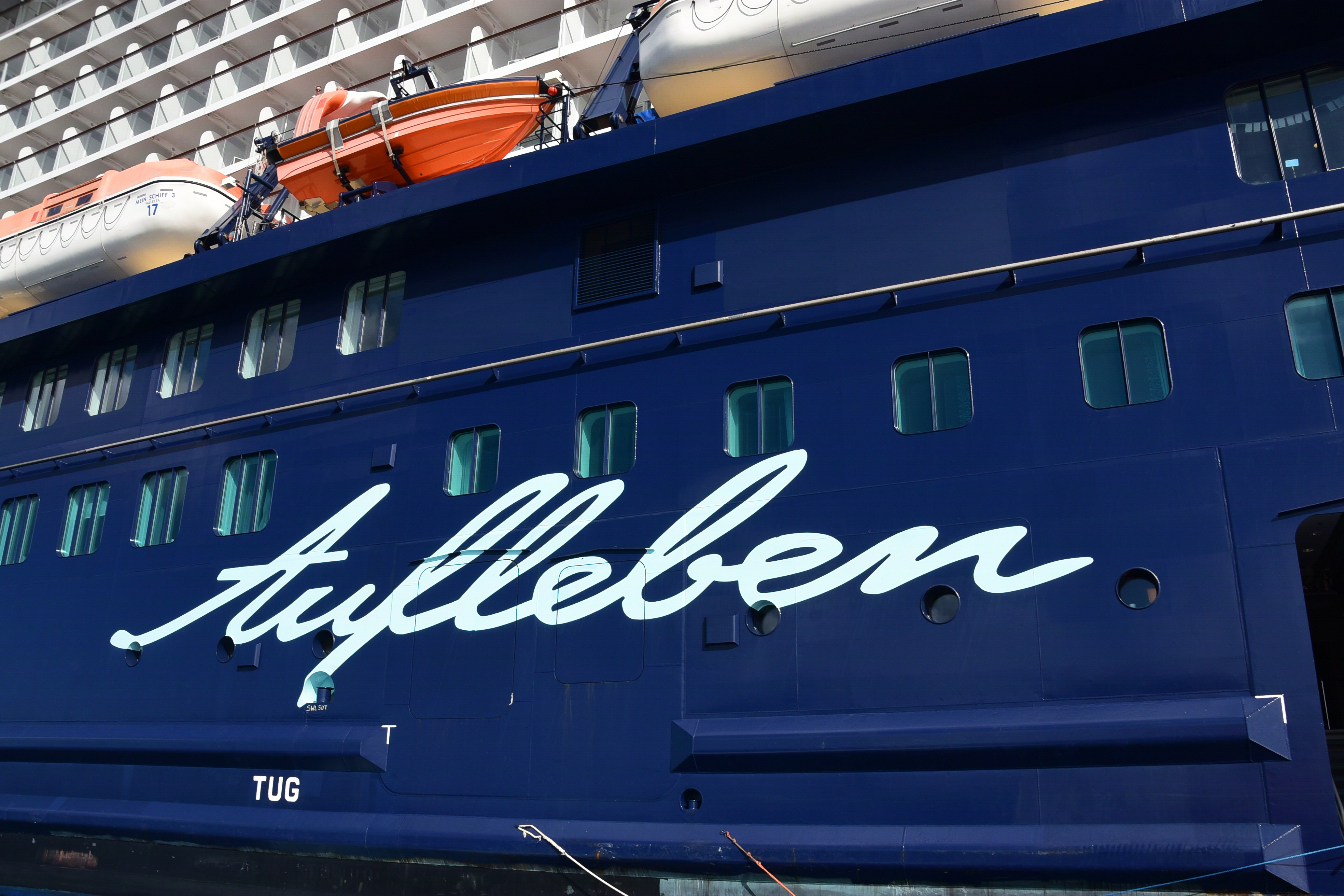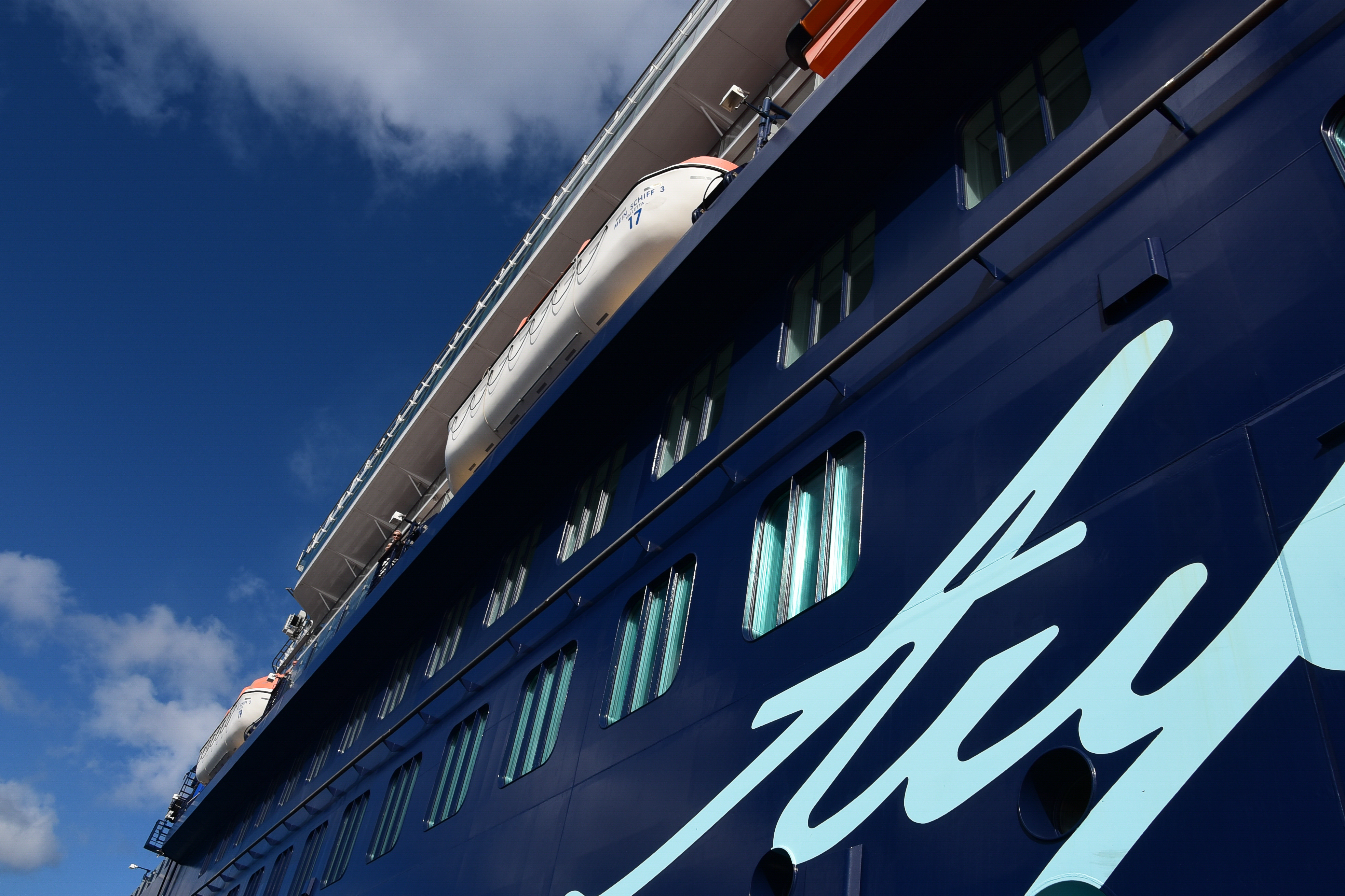 Wir wollten uns heute eigentlich auf einem Liegestuhl an Decke häuslich einrichten, aber bis wir das erste mal unsere Nase ins Freie hielten, war da schon relativ viel los. Wir umrundeten die Mein Schiff und entschieden uns, es uns auf unserem Balkon gemütlich zu machen.