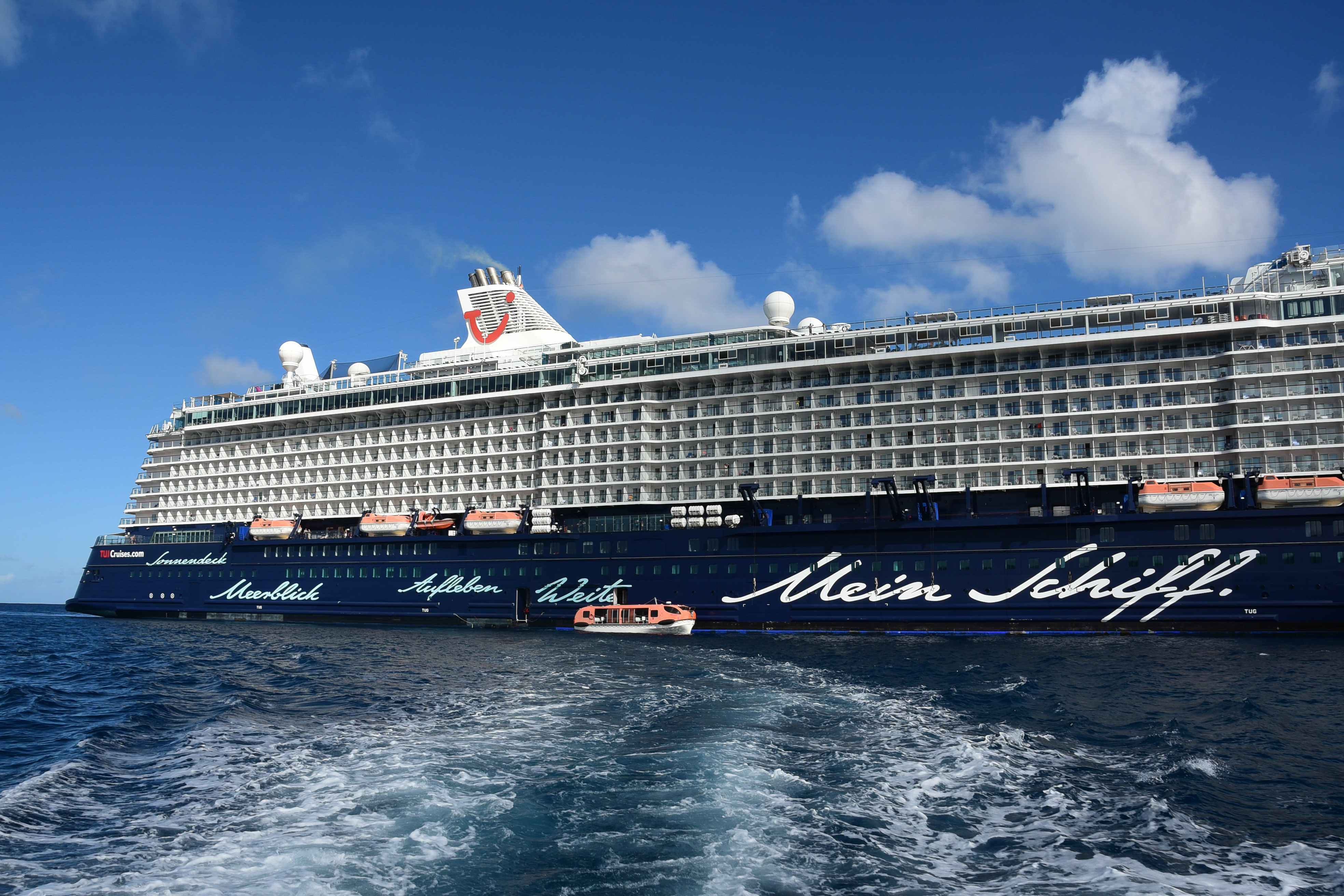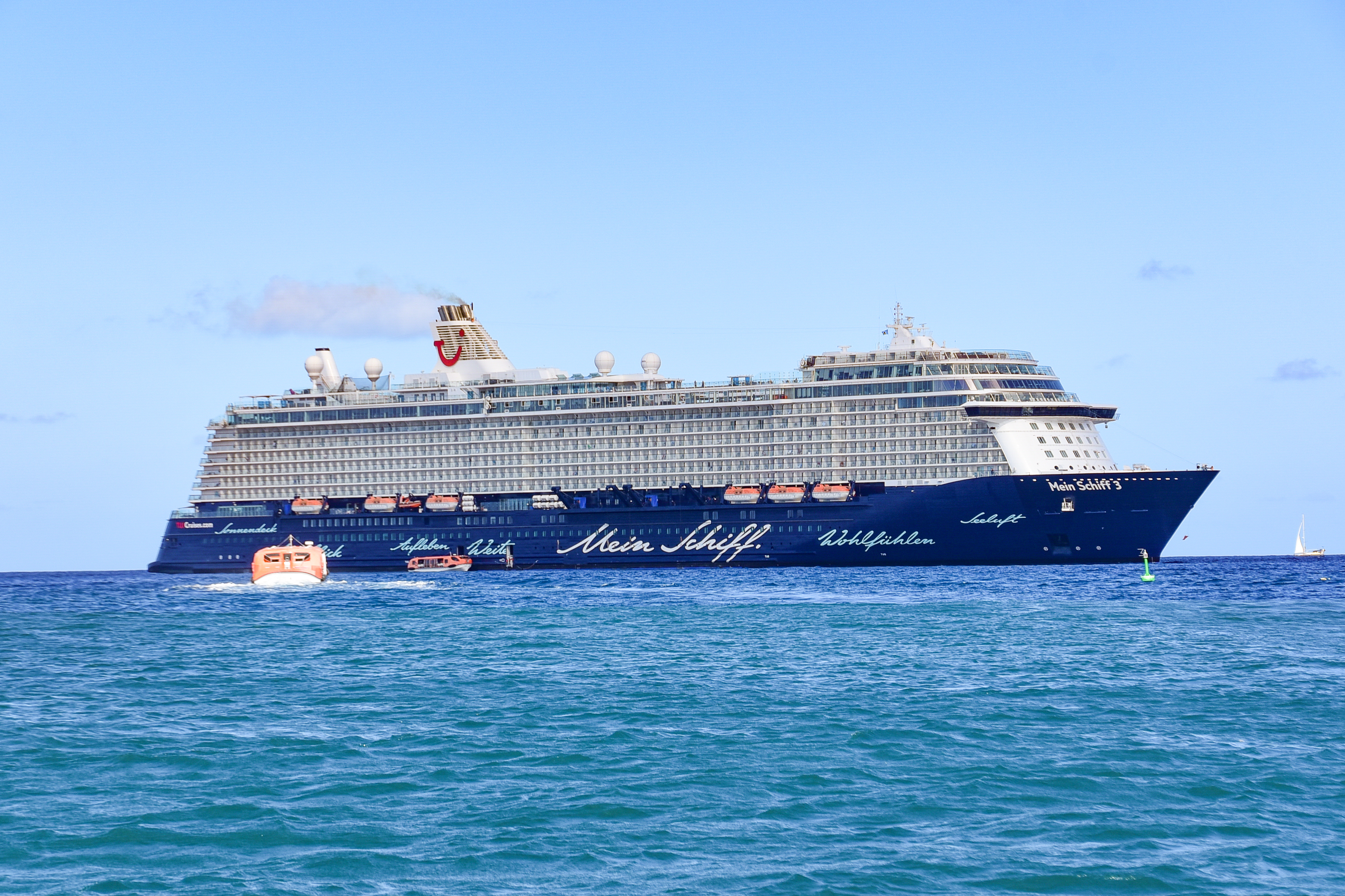 Der heutige Tag versprach wieder, spannend zu werden. Während wir in unseren Kajüten langsam wach wurden, hatte sich die Mein Schiff 3 schon einen netten Platz vor der Insel St. Lucia gesucht und dort geankert. Ich vermute, alle Liegeplätze im Hafen waren schon belegt und so mußte die Mein Schiff eben auf Reede liegen. Um so spannender für uns, hieß es doch heute dann: Alle Mann auf die Tenderboote – heute wird getendert.