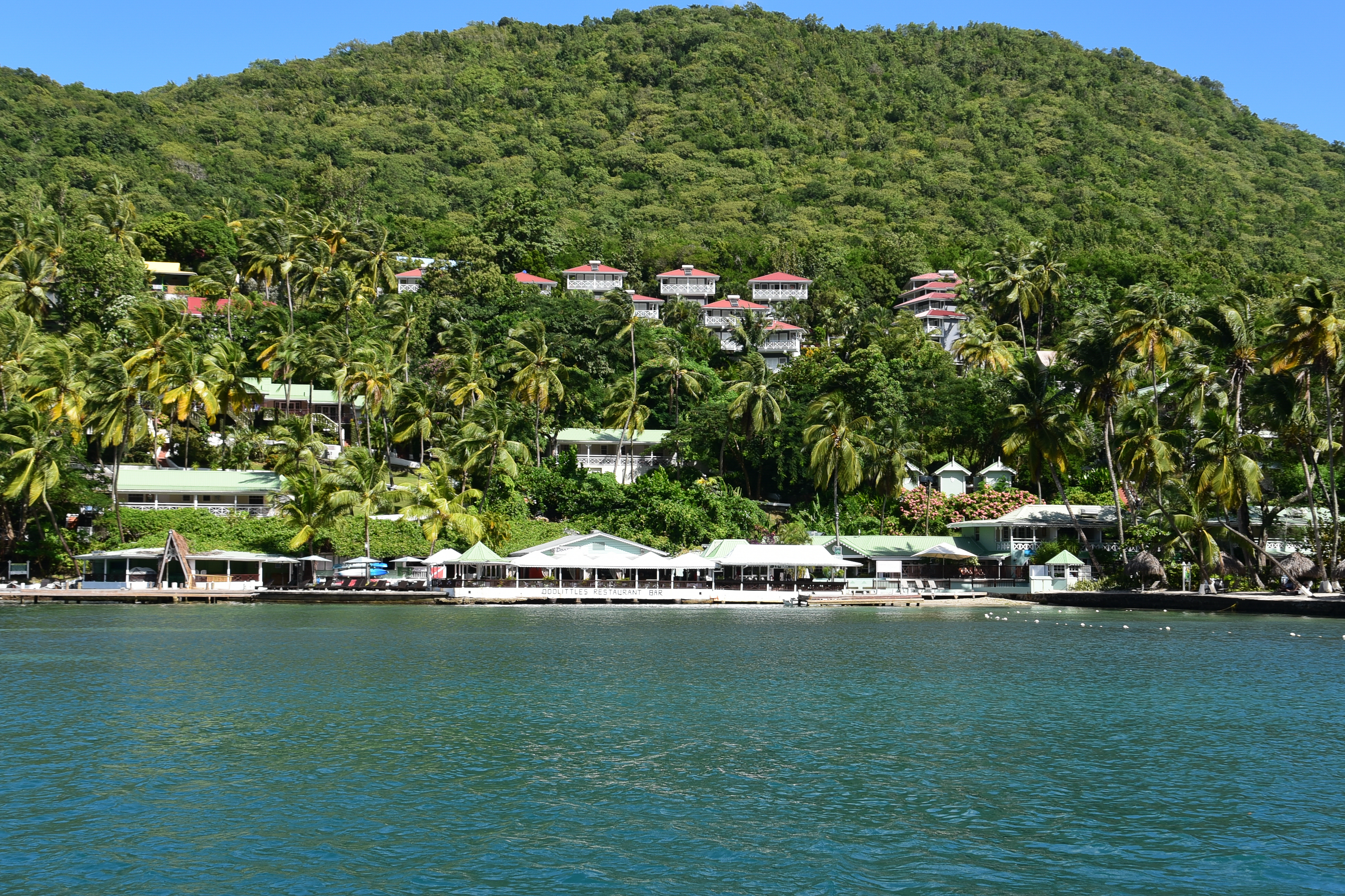 Hier unser Stopp an der Marigot Bay: