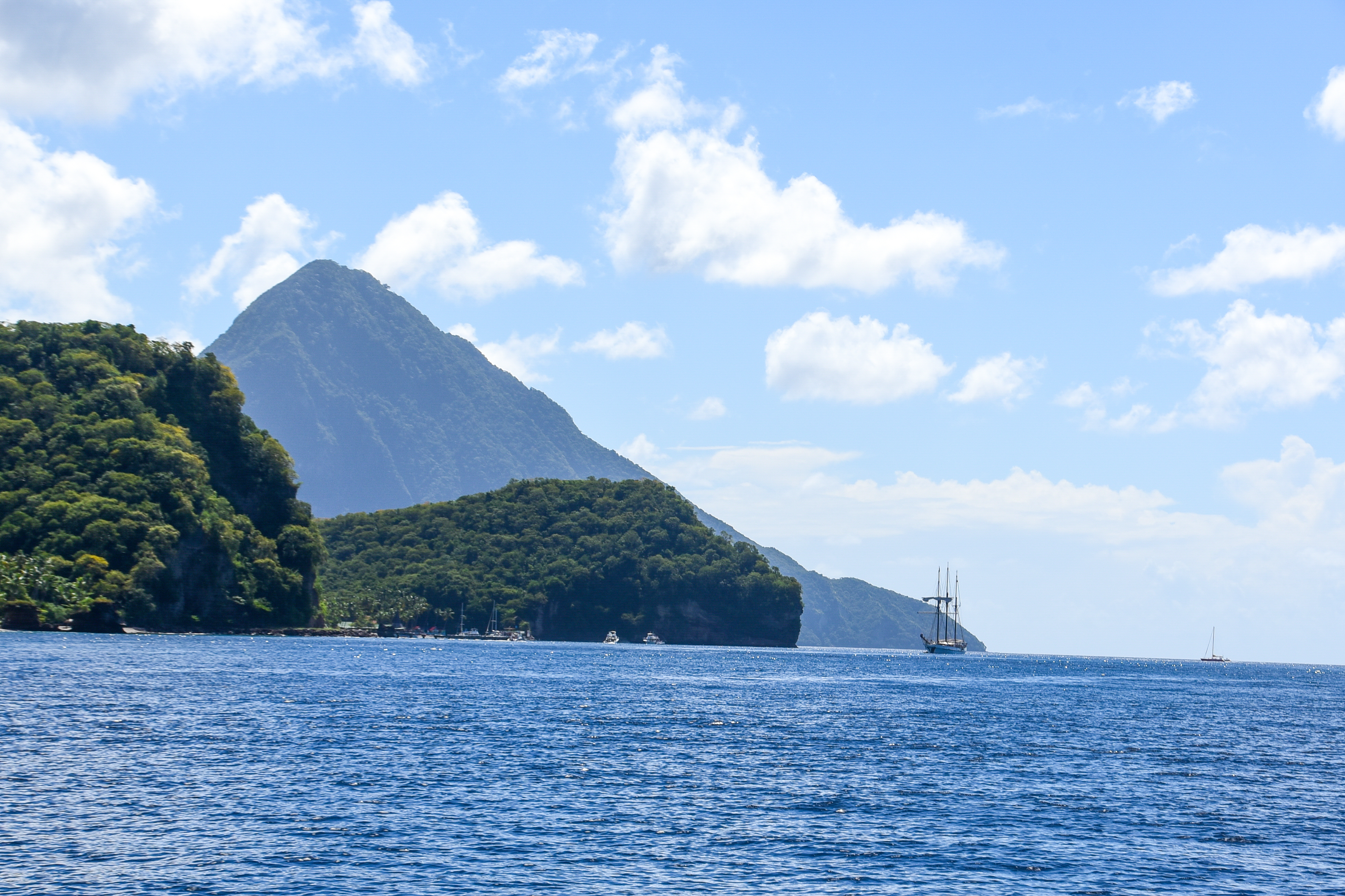 Weiter ging es dann mit den Segeln immer gut im Wind an der Küste St. Lucias entlang und in Richtung Pitons – es war sehr schön und kurzweilig, obwohl wir einfach nur da saßen und die Landschaft genossen. Die Natur – unglaublich schön.