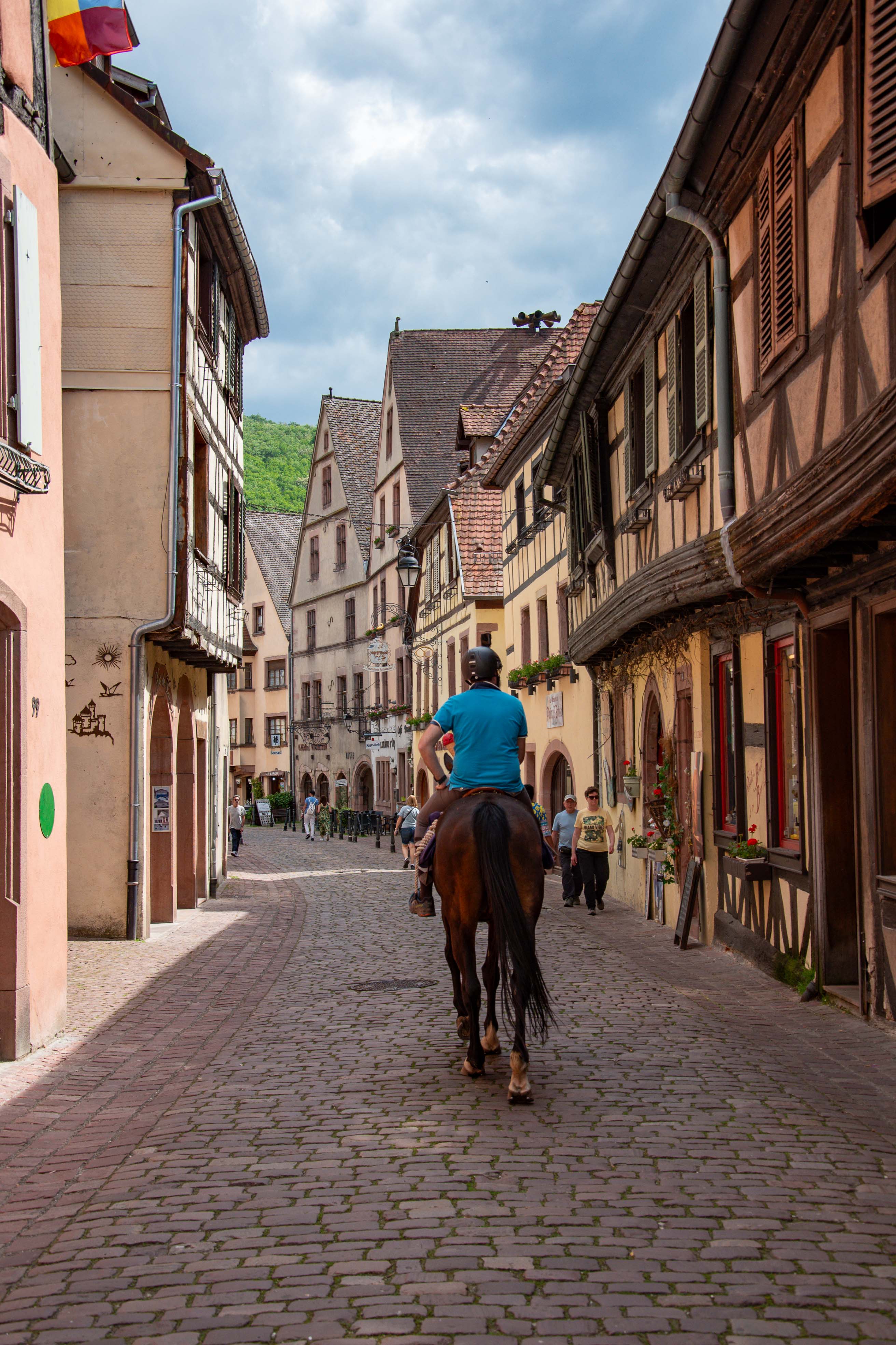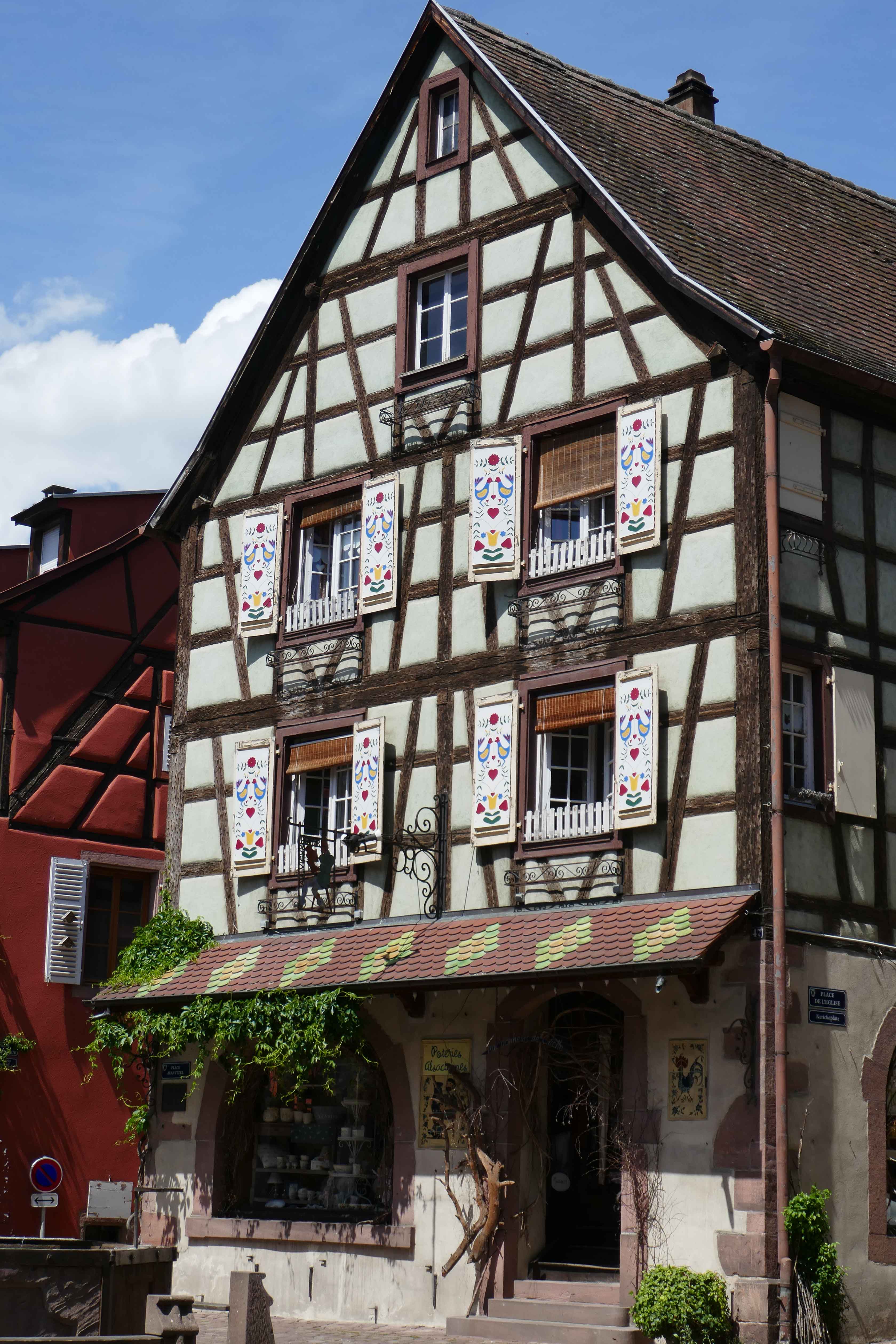 Zurück zum Auto, mittlerweile war die Luft schon leicht schwül und es zeichnete sich in der Ferne ab, daß es wohl in der nächsten Stunde zumindest regnen würde. Also, wir ins Auto und gen Equisheim gefahren. Die Entfernungen hier sind wirklich minimal, man ist innerhalb von 15 Minuten im nächsten wunderschönen Ort. Herrlich.