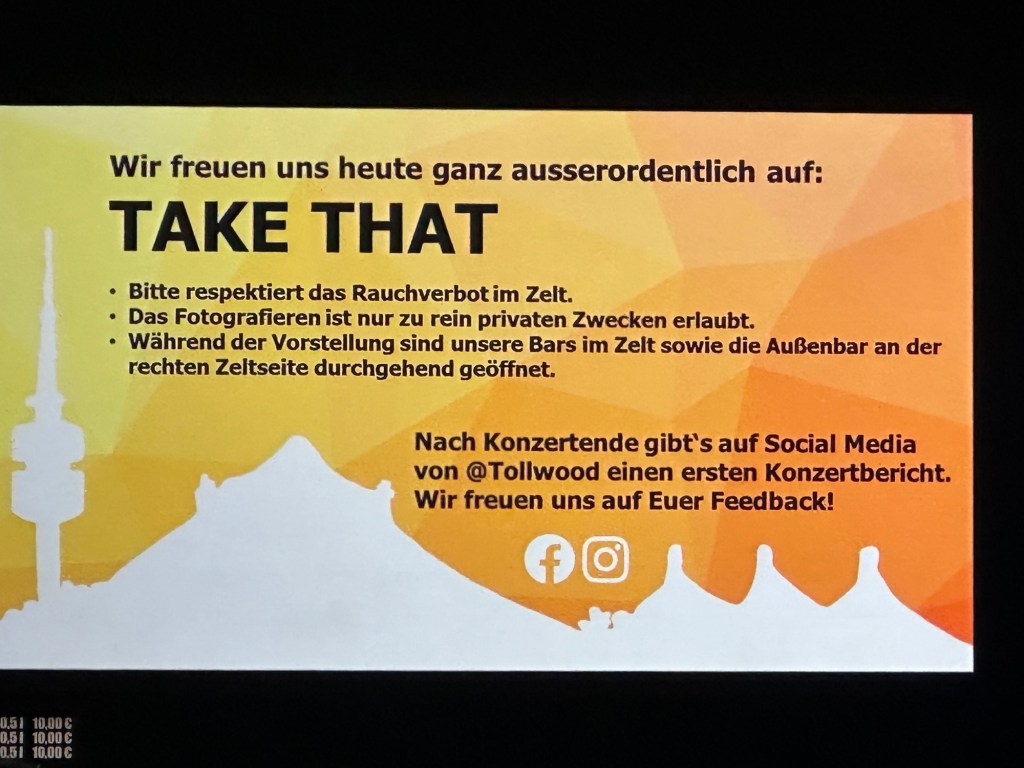 Wir waren doch tatsächlich bei Take That und ich sag euch: die 3 verbliebenen Jungs haben es wirklich noch richtig drauf. Ich war nie DER Fan der Gruppe, aber in den 90ern und auch Anfang der 2000 er kam man nicht drumherum: Back for good, Giants, Patience, The Flood… konnte ich mitsingen.