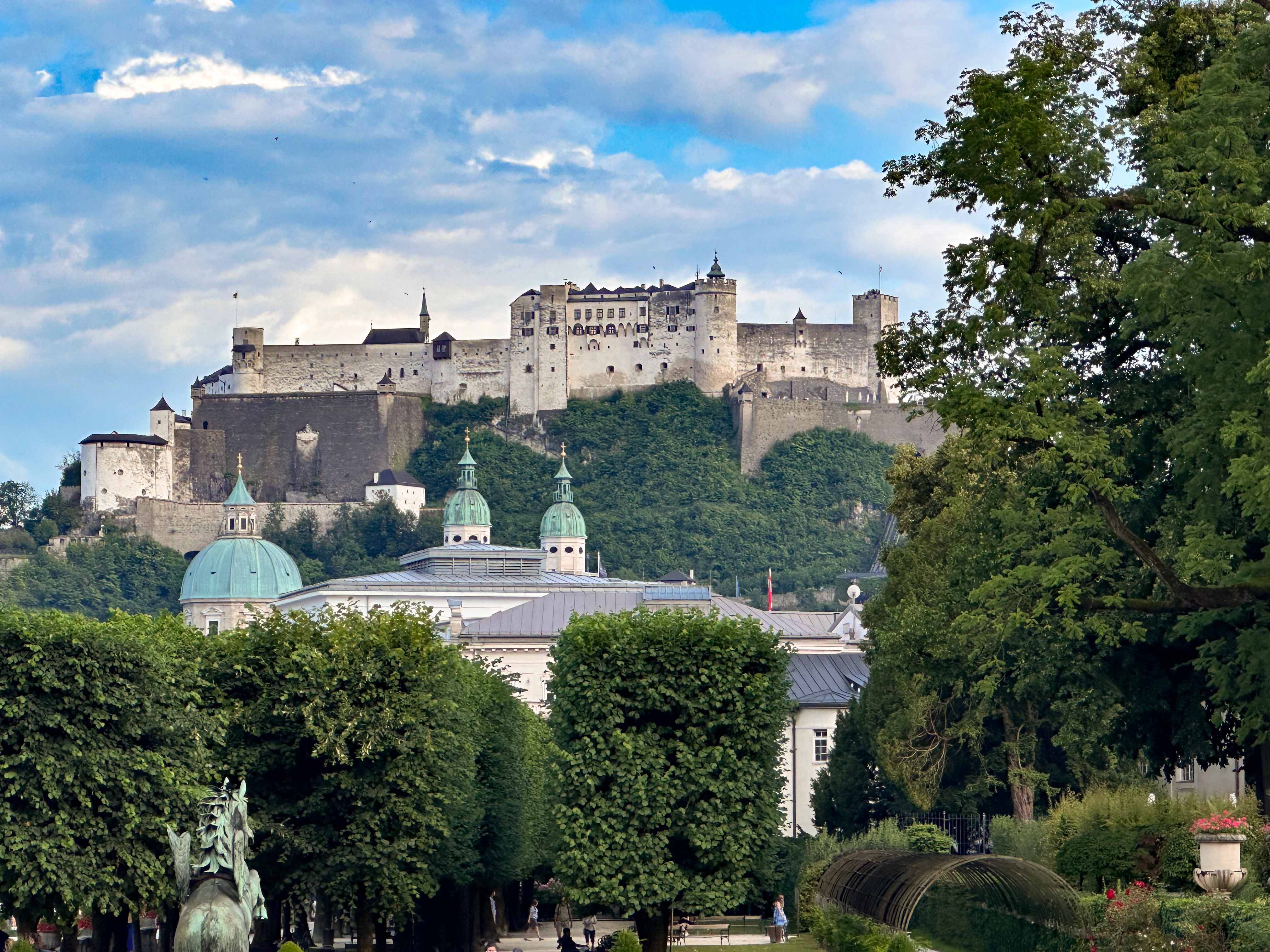 Von dort aus ist man in knapp 5 Minuten zu Fuß im Zentrum von Salzburg – am Dom oder in der Getreidegasse. Unser erstes Ziel war „die Burg“ – so sagt es aber kein Salzburger – hier heißt es „Die Festung Hohensalzburg“.