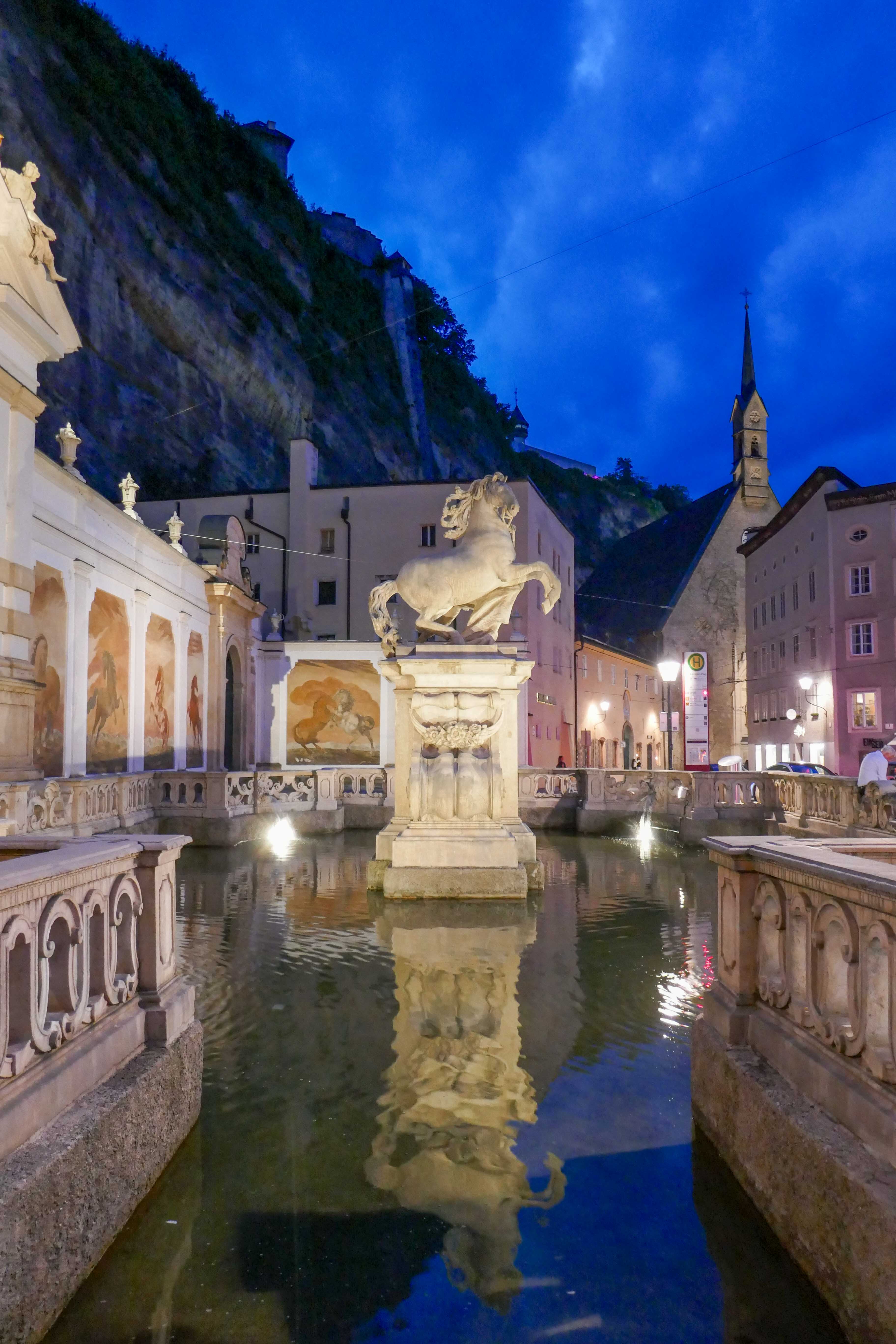 Wir fuhren mit dem Auto wieder zur Mönchsberggarage und marschierten los auf die andere Seite der Stadt. Dort ist das Hotel, in dem ich letztes Jahr mit meinen Mädels war und ich habe mich erinnert, daß wir da schön zu Abend gegessen hatten. Und auf dieser Seite der Stadt ist auch das Schloss Mirabell und der Mirabellgarten. Da wollten wir noch kurz hin. Also sind wir durch die Getreidegasse dann auf die andere Seite, dort am Hotel Sacher vorbei und in den Mirabellgarten.