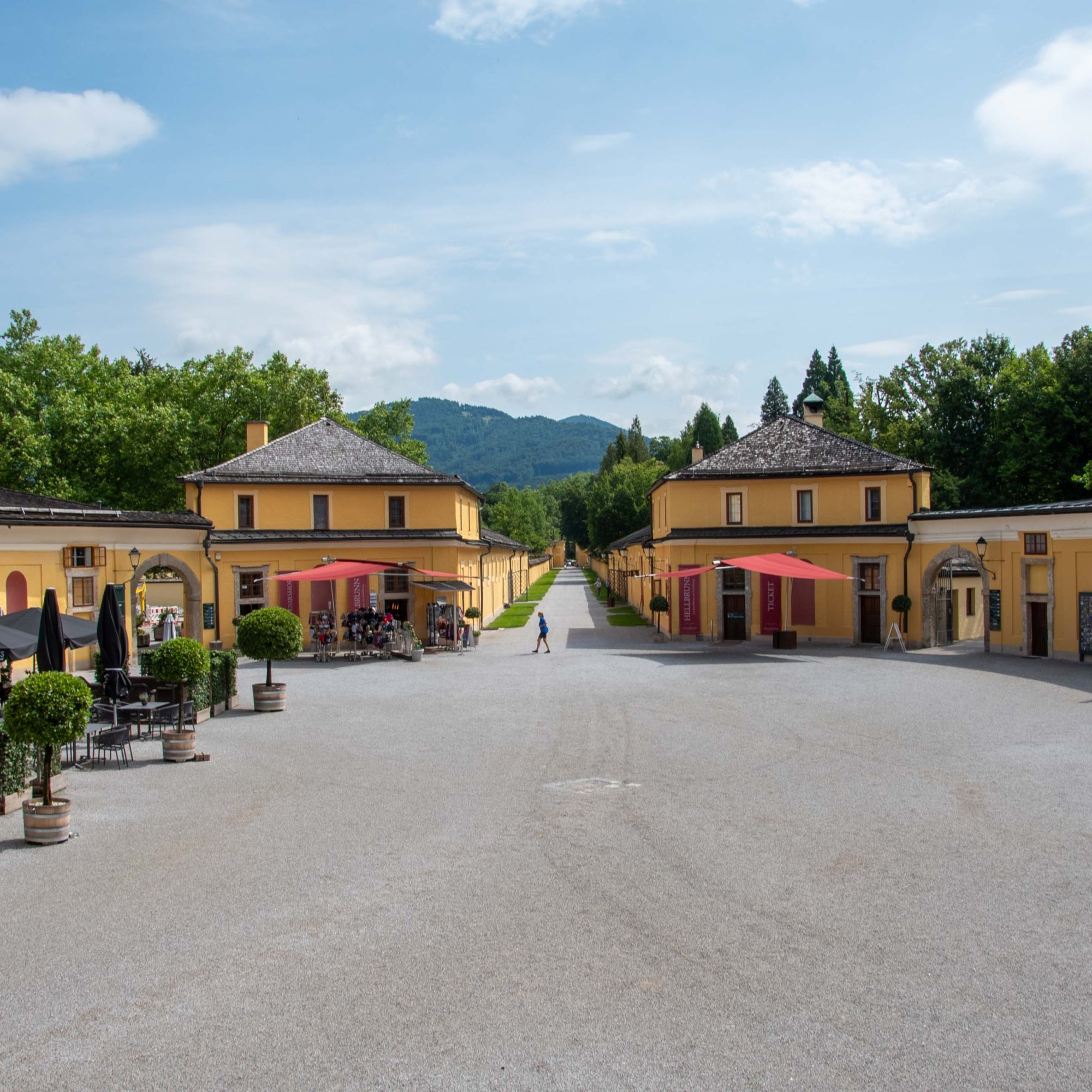 Teil der Inszenierung war die kilomenterlange, schnurgerade Hellbrunner Allee, die man früher mit der Kutsche befuhr.