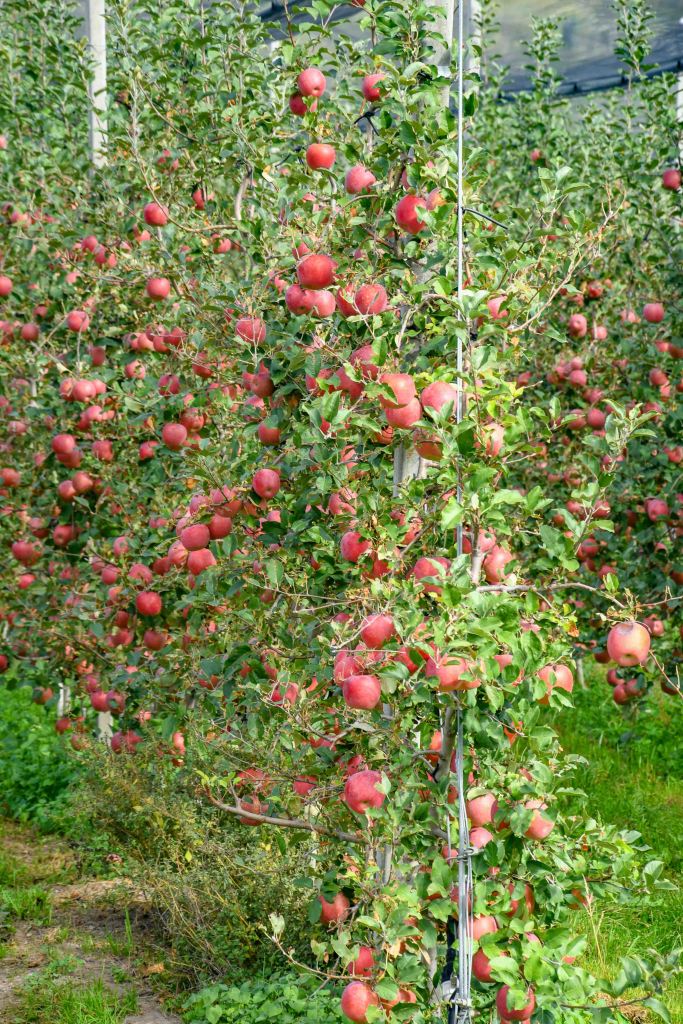 Und so fuhren wir mit dem Auto erst mal zur „Gretl am See“ auf den Parkplatz und liefen dann bei herrlichstem Sonnenschein und ca 24 Grad los – in T-Shirt und hochgekrempelter Wanderhose. Wir marschierten. „links rum“ und kamen erst mal an diversen Apfelplantagen vorbei.
