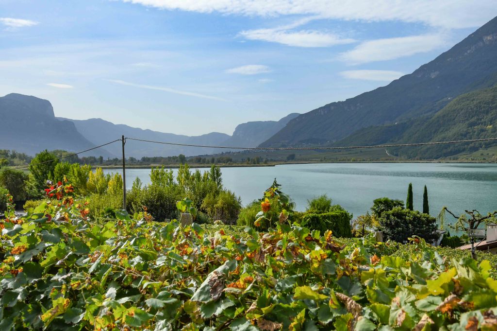 Am nächsten Morgen saßen wir doch tatsächlich wieder im Garten zum Frühsück – leichtes Strickjäckchenen übergezogen – aber draußen. Unser Plan heute war den Kalterer See zu Fuß zu umrunden. Laut KOMOOT ca 7,5 km und gemütliche knappe 2 Stunden.