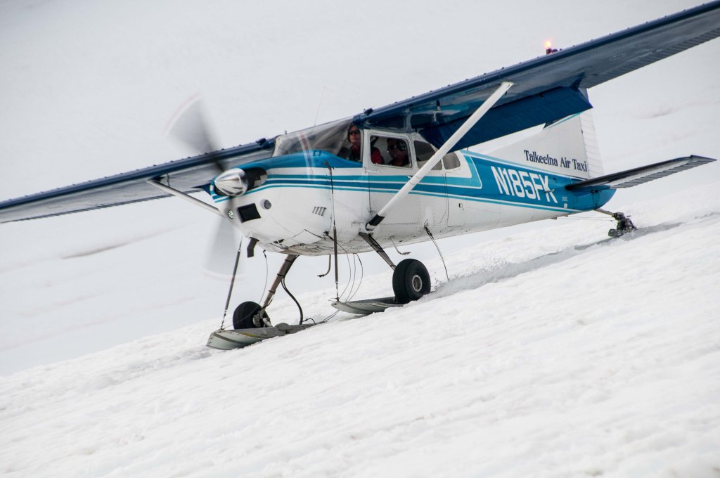 Nachdem das Wetter für die nächsten Tage nicht besser werden sollte, rauschten wir gleich zum Talkeetna Air Taxi und fragten, ob für heute noch ein Rundflug über die Gletscher und zum Mount McKinley zu buchen sei. Der große Rundflug konnte leider aufgrund des Wetters nicht stattfinden, aber den kleinen buchten wir, fuhren kurz zu unserer Lodge zum Koffer abladen und waren dann schnell wieder vor Ort am Flugplatz.