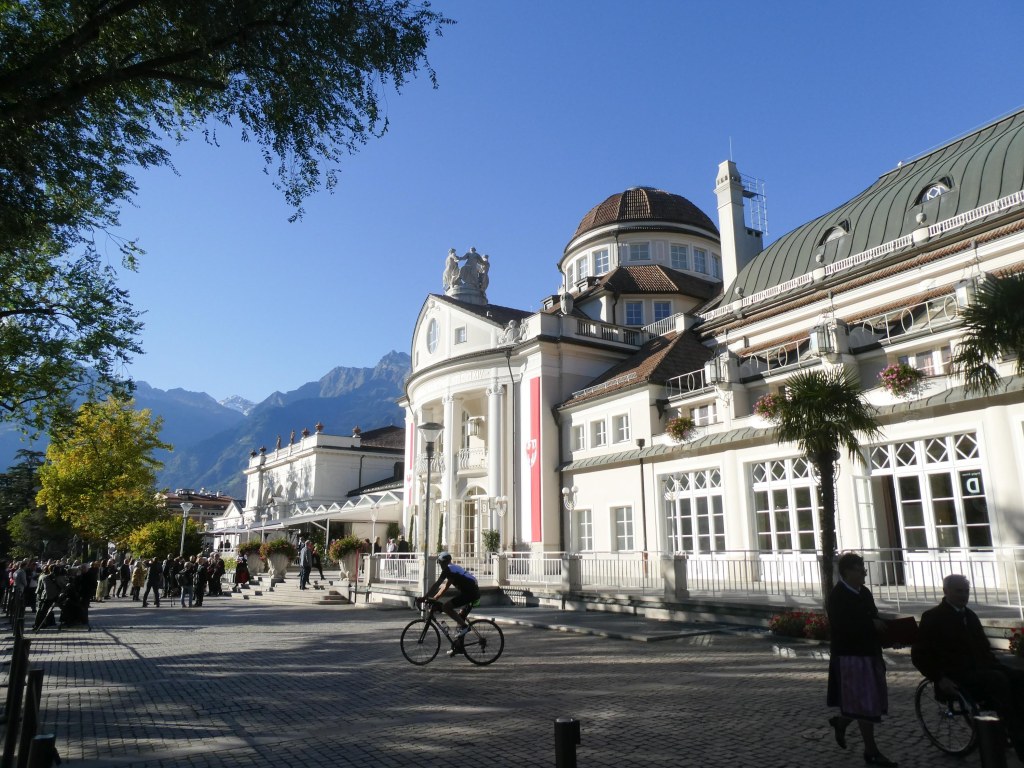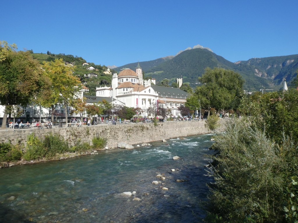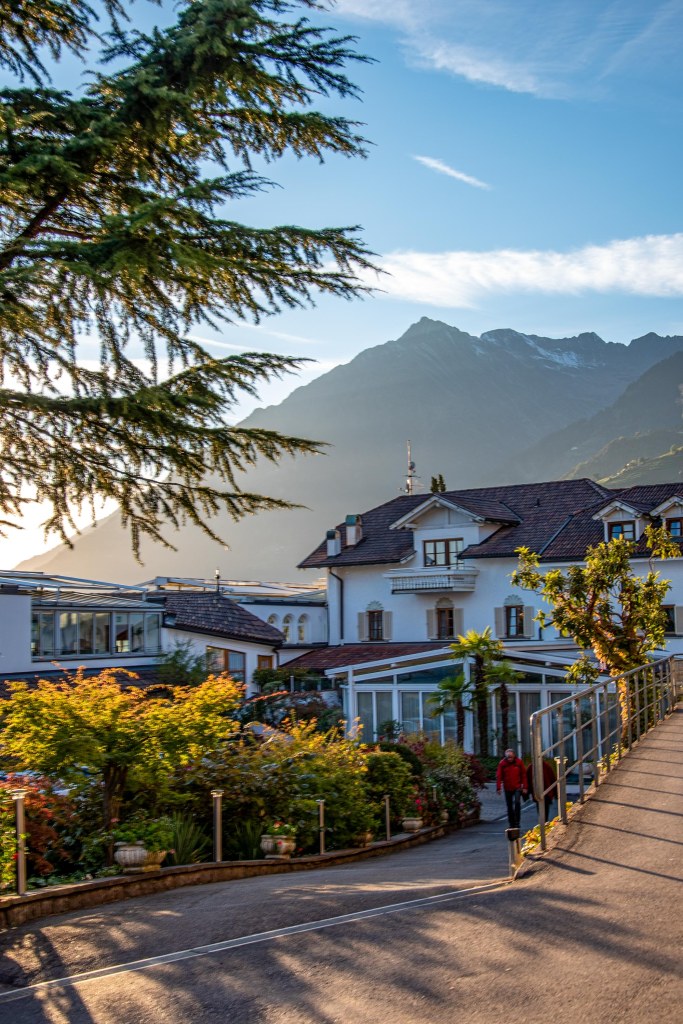 Nachdem wir durch die Stadt und durch die Arkaden spaziert sind, gönnten wir uns an der Kur-Promenade einen Aperol Spritz bzw. Kaffee und Zwetschgendatschi und machten uns wieder auf den Heimweg. Geschickterweise hatten wir gestern im Furggerhof (gegenüber von unserem Hotel) gleich wieder einen Tisch reserviert. Das Essen ist/war dort einfach göttlich – überhaupt ist die Südtiroler Küche seeeehr meine. Und unsere Bedienung – Virginia – ist sehr nett und aufmerksam Glücklich und satt fielen wir dann gegen 23.00 Uhr in unserer Betten.