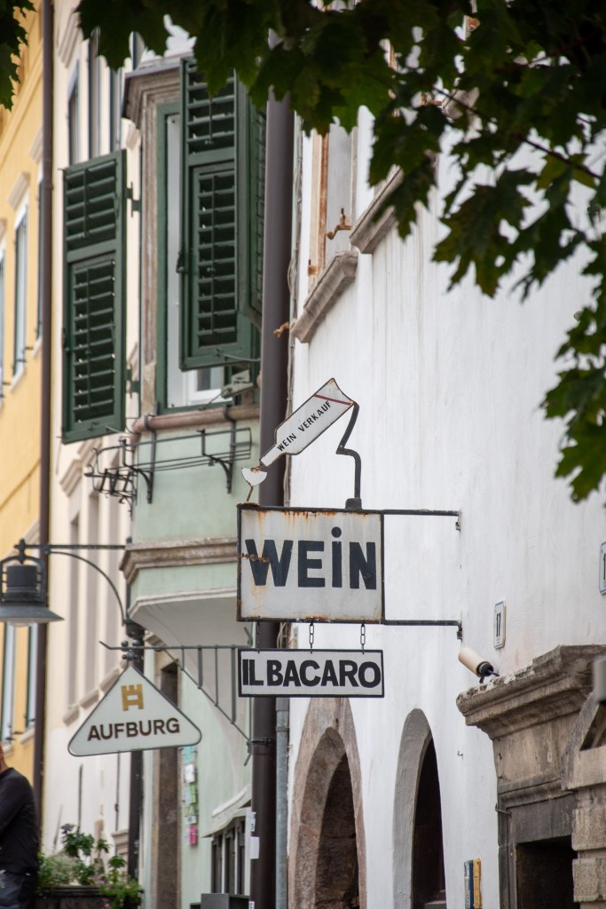 Aber dadurch, dass Bozen eine einzige Baustelle war, fiel unser Besuch recht kurz aus – wir marschierten durch die Innenstadt und am Markt entlang – aßen in einer Seitenstrasse eine Kleinigkeit und Manu nahm für Tom in einer Vinothek kurz vorm Parkhaus noch eine Kiste Wein mit.