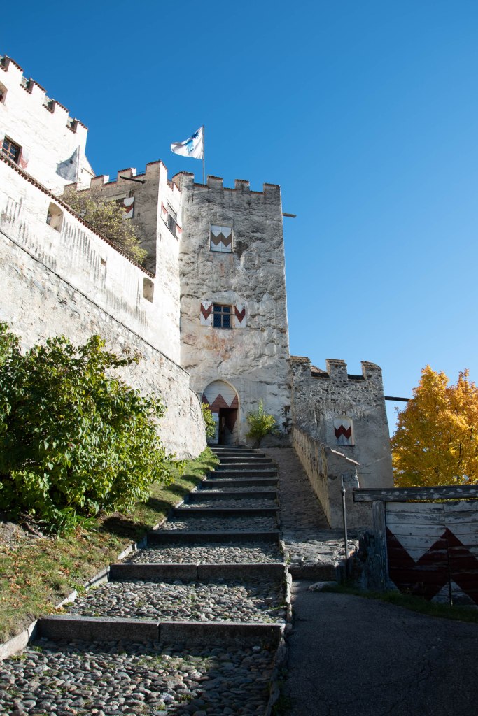 Eigentlich hatten wir beschlossen, heute die Wanderung von Terlan zur Ruine Neuhaus zu machen. Nachdem Tom und Manu, Stephan und Regina schon früher fertig waren und Achim noch einen geschäftlichen Call erledigen musste, fuhren die 4 schon etwas früher los. Wir wollten uns dann am Bahnhof am Parkplatz treffen und gemeinsam losmarschieren. Als wir am Parkplatz in Terlan ankamen, war von den 4 keine Spur zu sehen – kurzes Telefonat, sie seien noch in der Cantina bzw am Weingut. Nochmaliges kurzes Telefonat: Sie finden keinen Parkplatz und haben sich nun für eine Wanderung in den Weinbergen entschieden. Das konnten und wollten wir jetzt auch nicht so ganz nachvollziehen und verstehen und so marschierten Achim und ich auf den Spuren von Margarethe Maultasch. Diese war eine sehr emanzipierte Frau – ihren ersten Mann setzte sie vor die Tür – sie war mit ihm nicht zufrieden. Sowas gabs ja zu früheren Zeiten gar nicht.